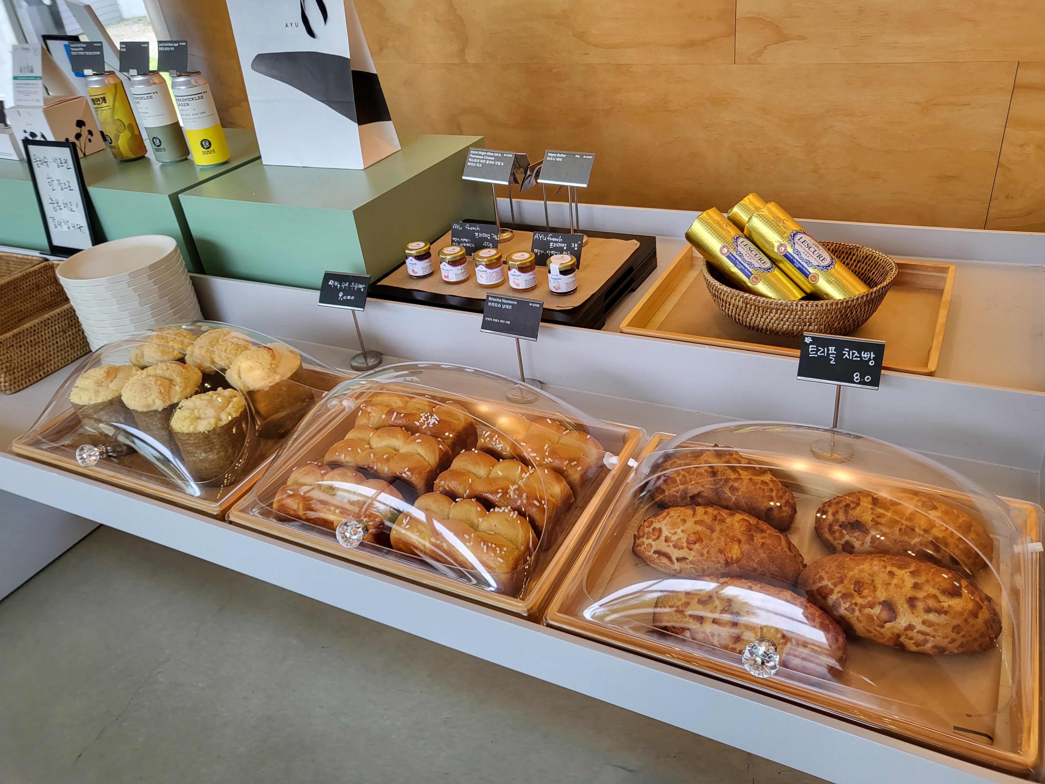 파스타, 샌드위치, 샐러드 등 브런치를 즐길 수 있고 다양하고 먹음직스러운 베이커리도 판매하고 있어요.