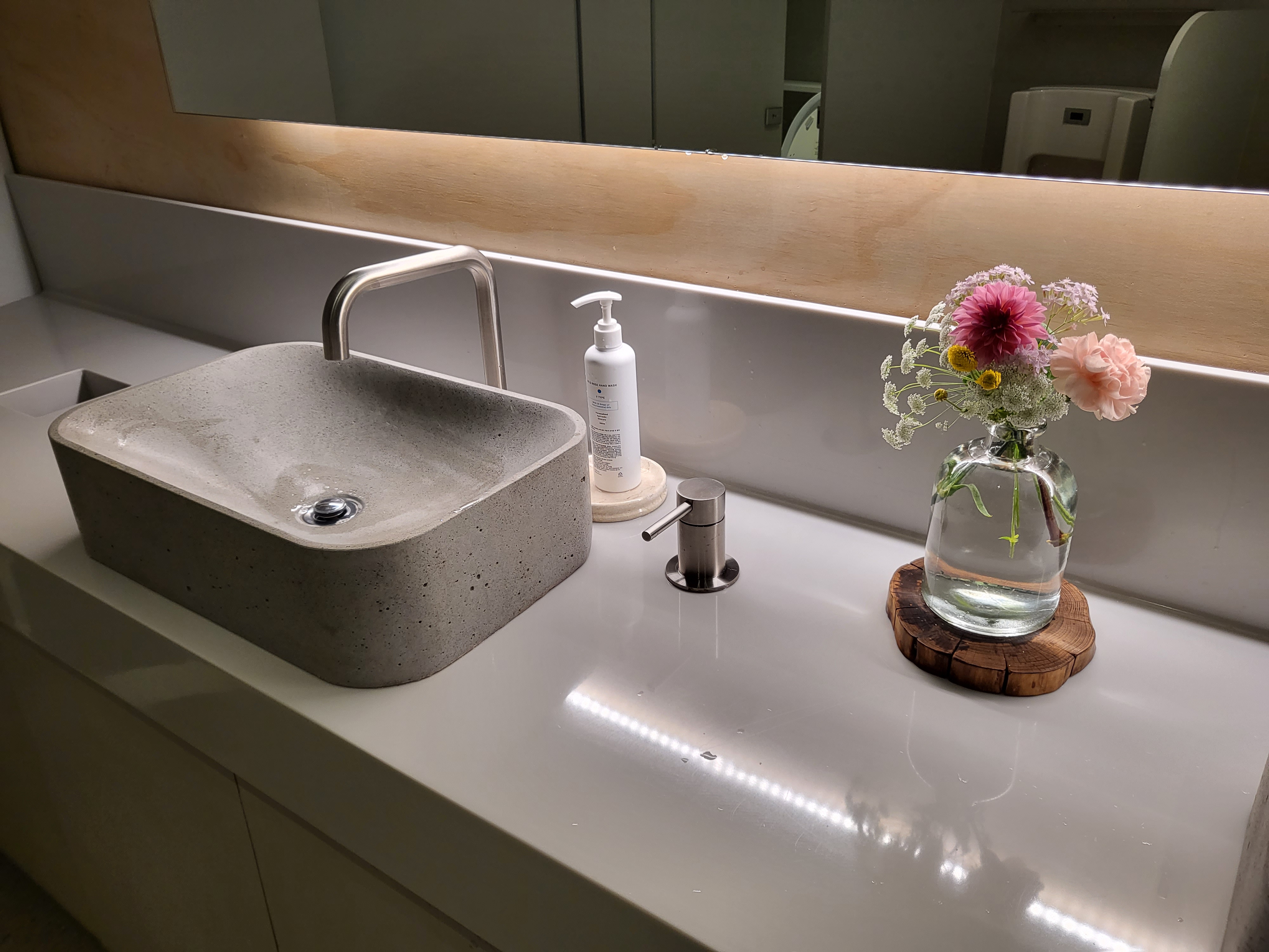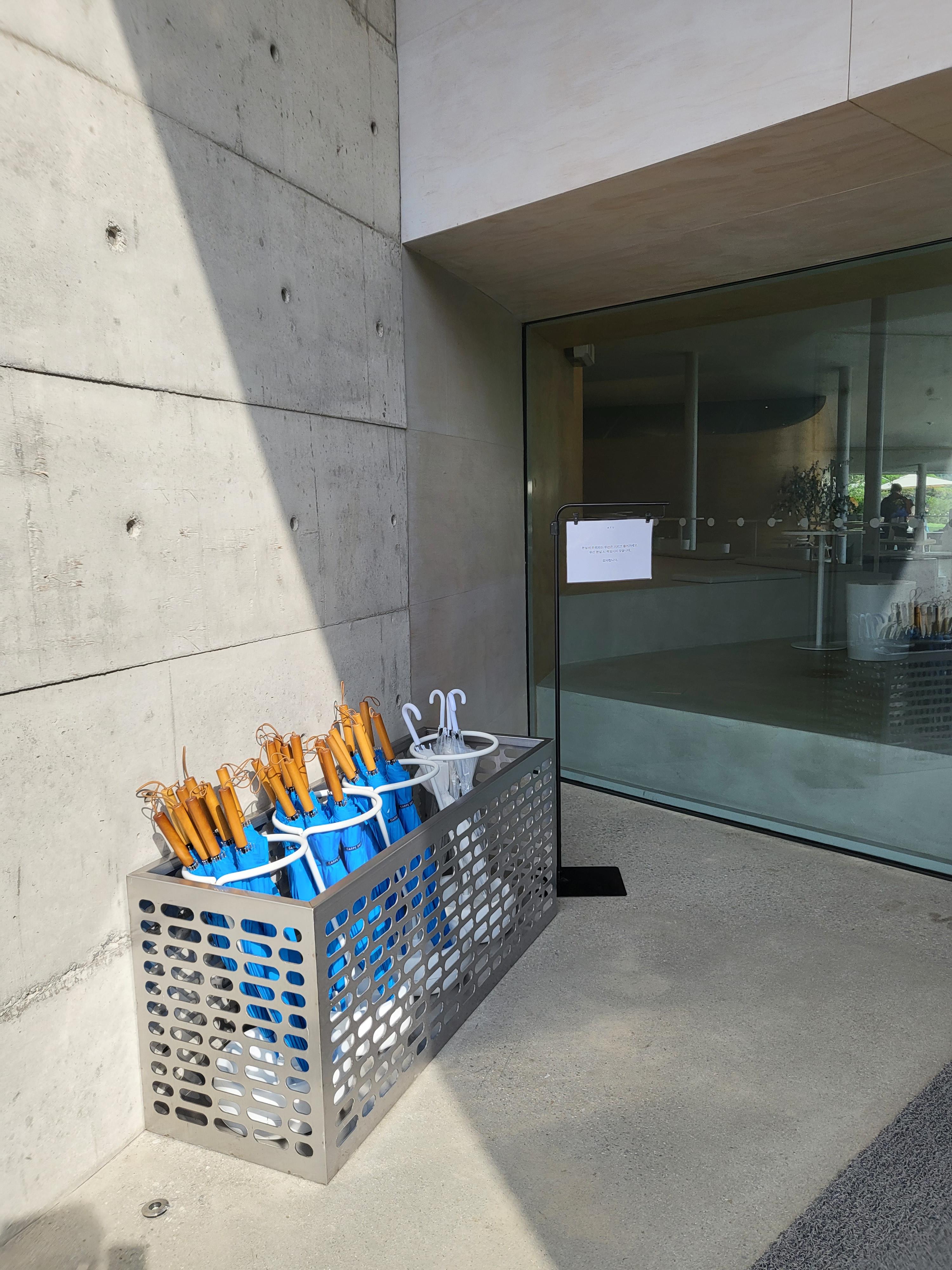 아유스페이스는 심플하고 고급스럽다는 느낌인데 화장실마저도 호텔처럼 매우 깔끔한데다 곳곳에 생화까지 꽂혀있네요. 그리고 야외테라스로 나가는 입구에는 우산이 마련되어 있어서 비가 오는 날에도 산책길을 걸을 수 있도록 하는 세심한 배려가 보입니다.