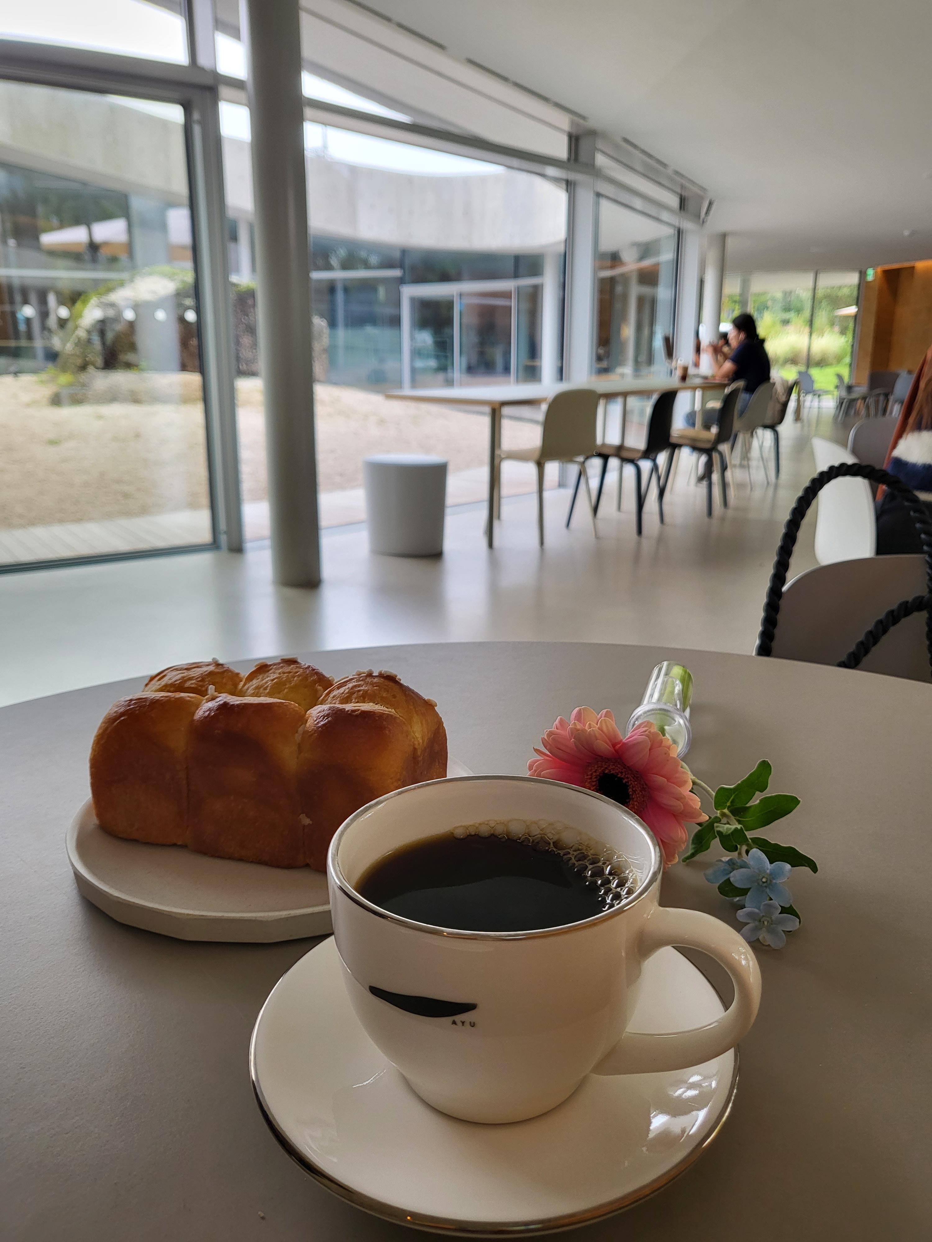 커피와 소금빵을 주문했어요. 커피의 양이 좀 적고 가격도 비싼 편이지만 분위기값이라 생각하면 될 거 같아요. 커피 맛은 부드럽고 향도 진했어요. 좋은 원두를 신선한 상태에서 로스팅을 해서 그런지 커피 맛은 좋았습니다. 소금빵은 커피와 함께 곁들여 먹기에 좋네요.