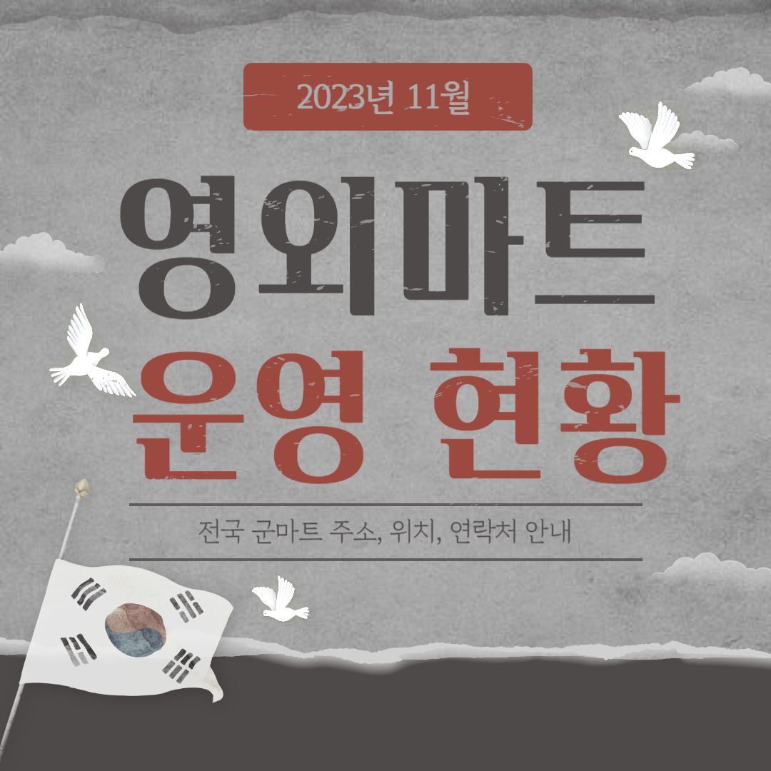 우리 나라를 지키며 독립과 자유를 위해 희생을 하신 국가유공자, 보훈자분들을 위한 복지 중 하나인 군 PX 영외마트 시설 이용이 있습니다. 매월 업데이트되는 군마트 영외마트의 2023년 11월 기준 운영 현황을 소개합니다.