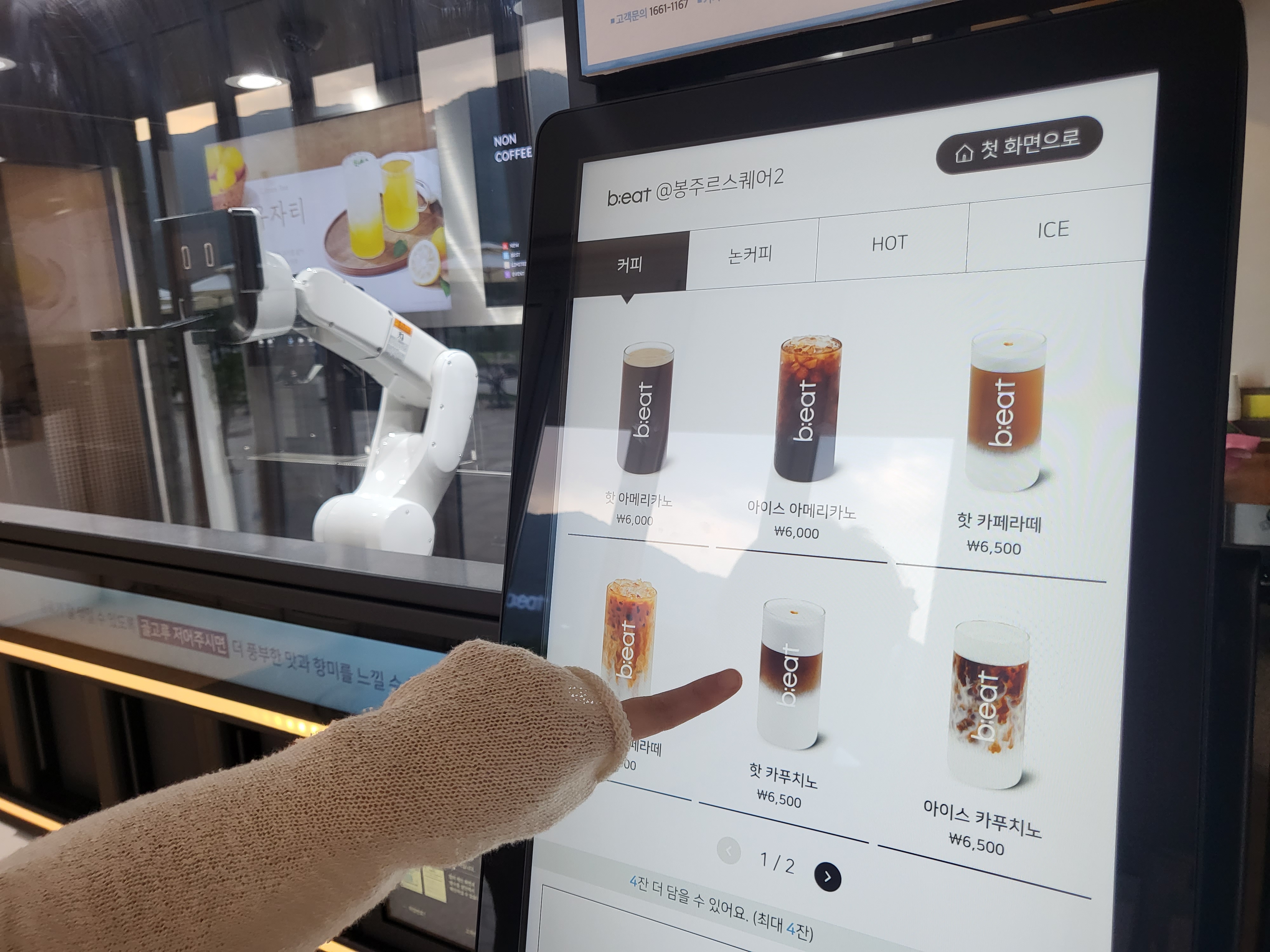 대형 카페에서는 보기 드물게 키오스크 주문을 통해 로봇이 커피를 로스팅해 주네요. 그 덕에 바리스타를 통해 제조되는 커피보다는 저렴한 거 같아요.
