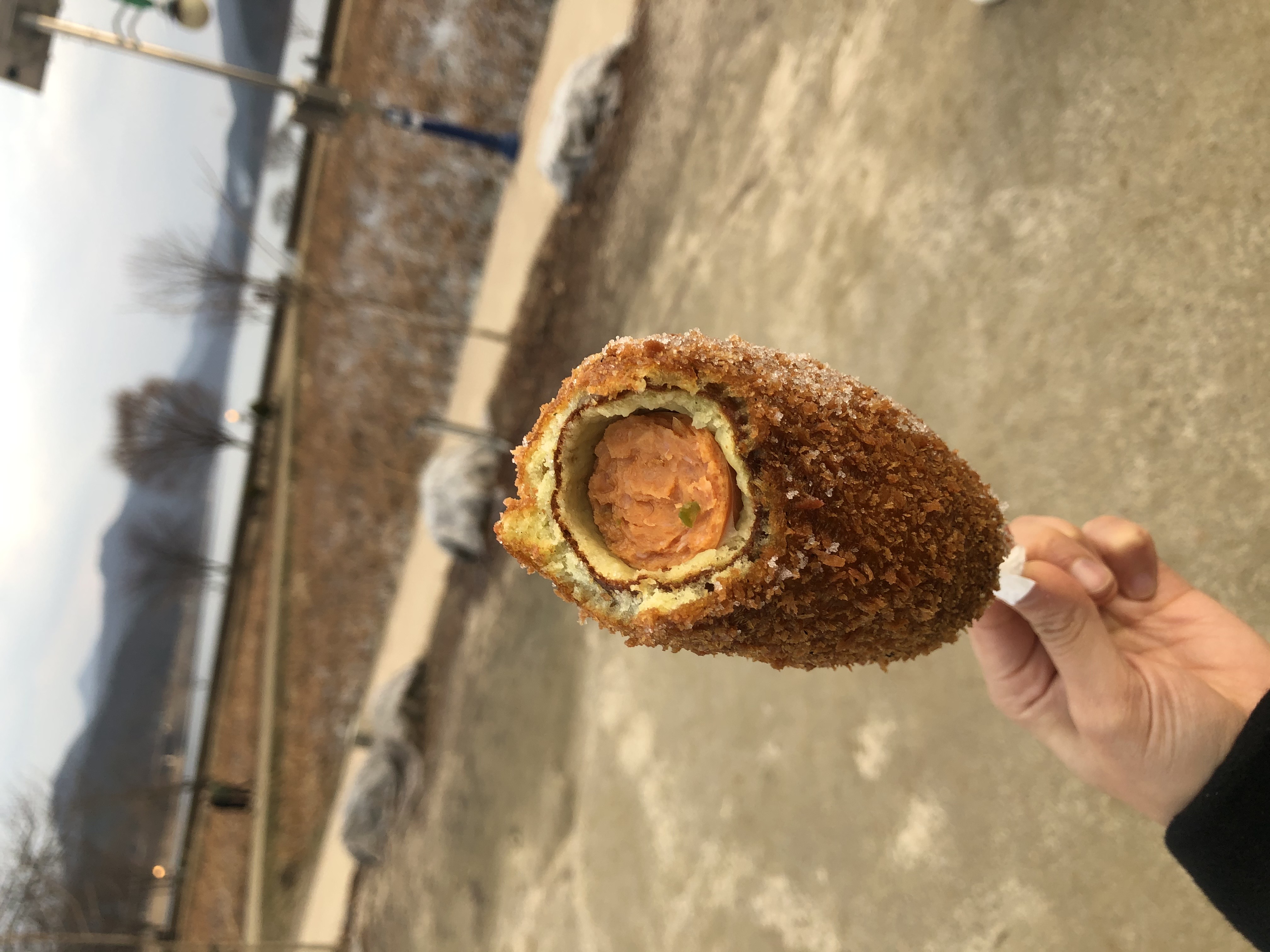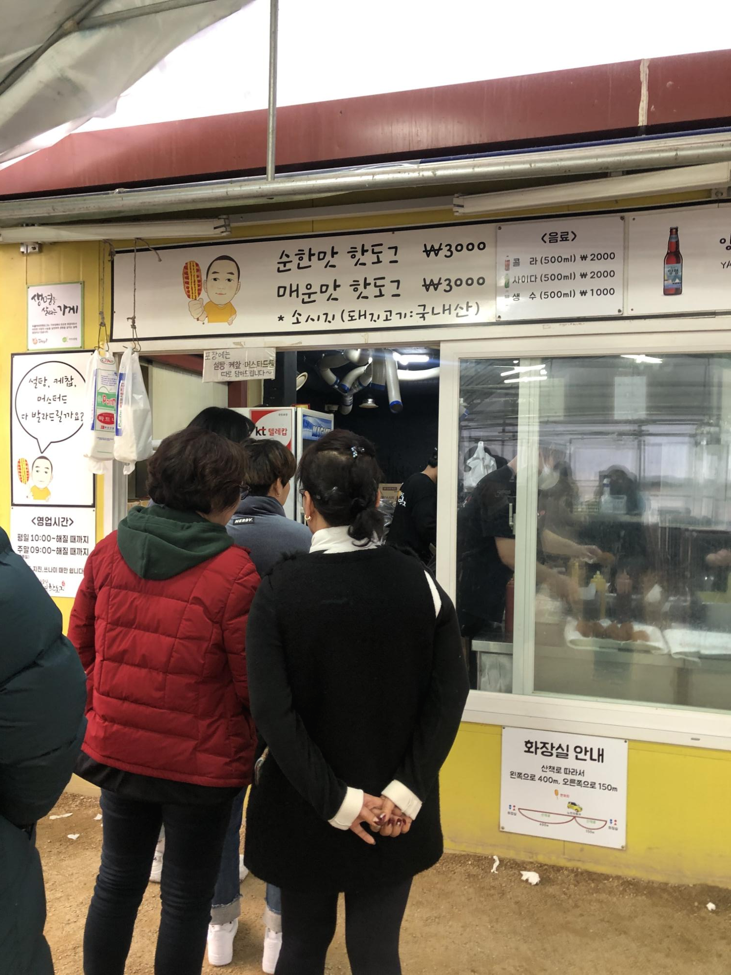 쌀쌀한 날씨에도 핫도그를 먹기위한