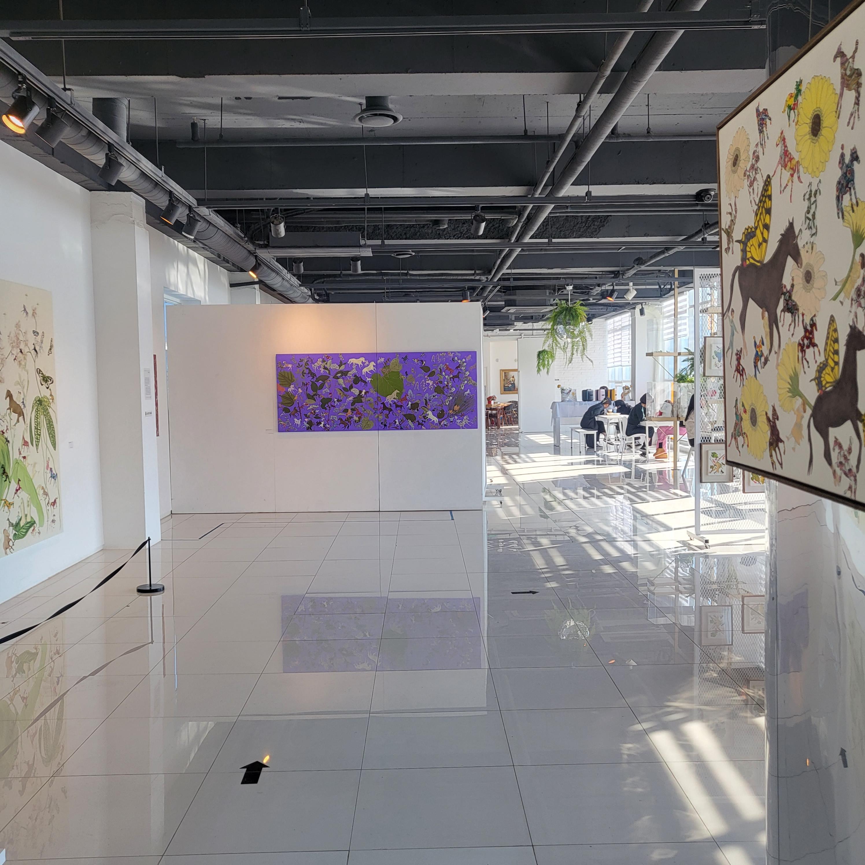 보통 전시회 하면 어두운 공간에 조명을 떠올리게 되는데 따스한 자연 채광을 그대로 예술과 접목하고 있어요.