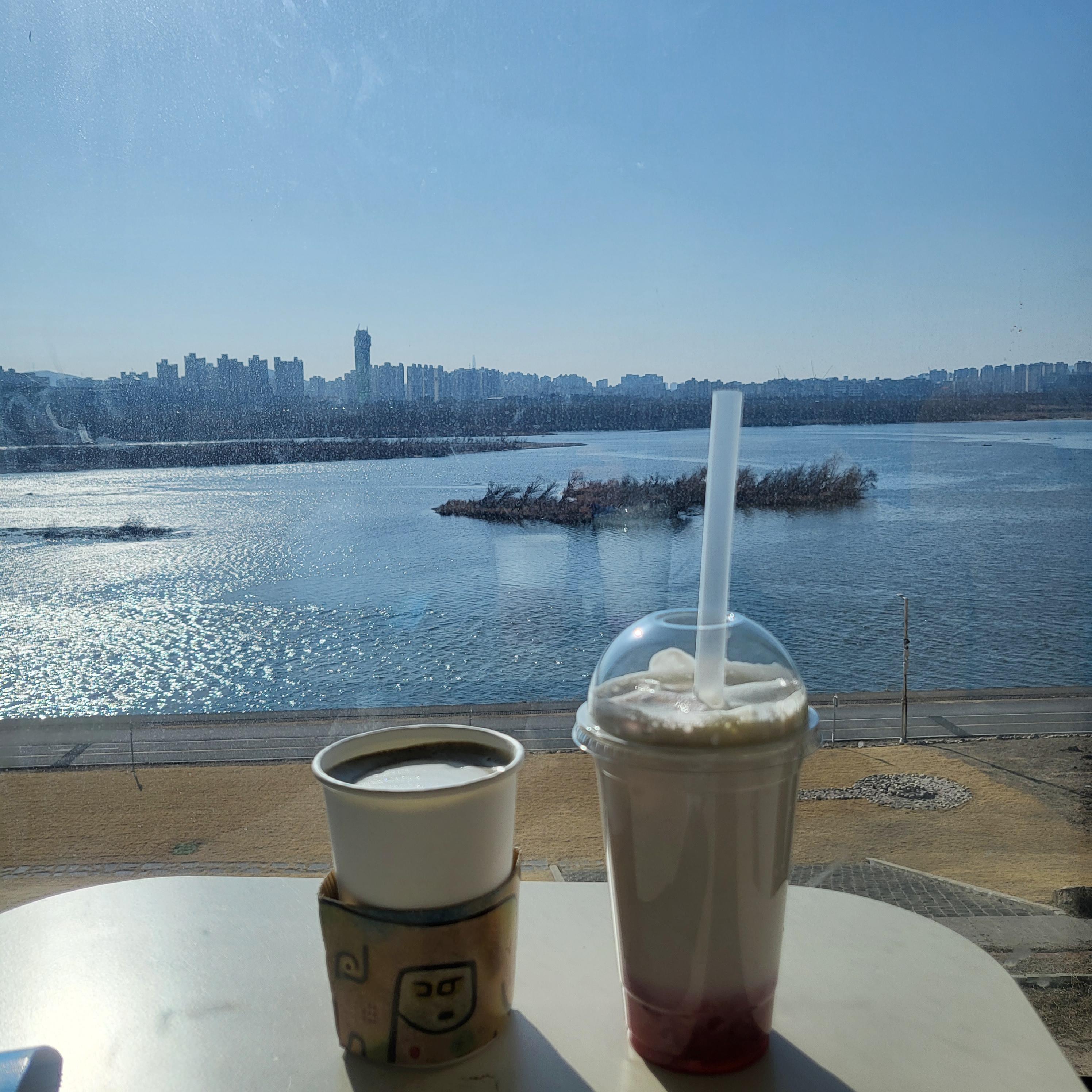강이 보이는 곳에 자리를 잡았어요. 날씨 좋은 날 한강을 바라보며 여유있는 시간을 보낼 수 있네요.