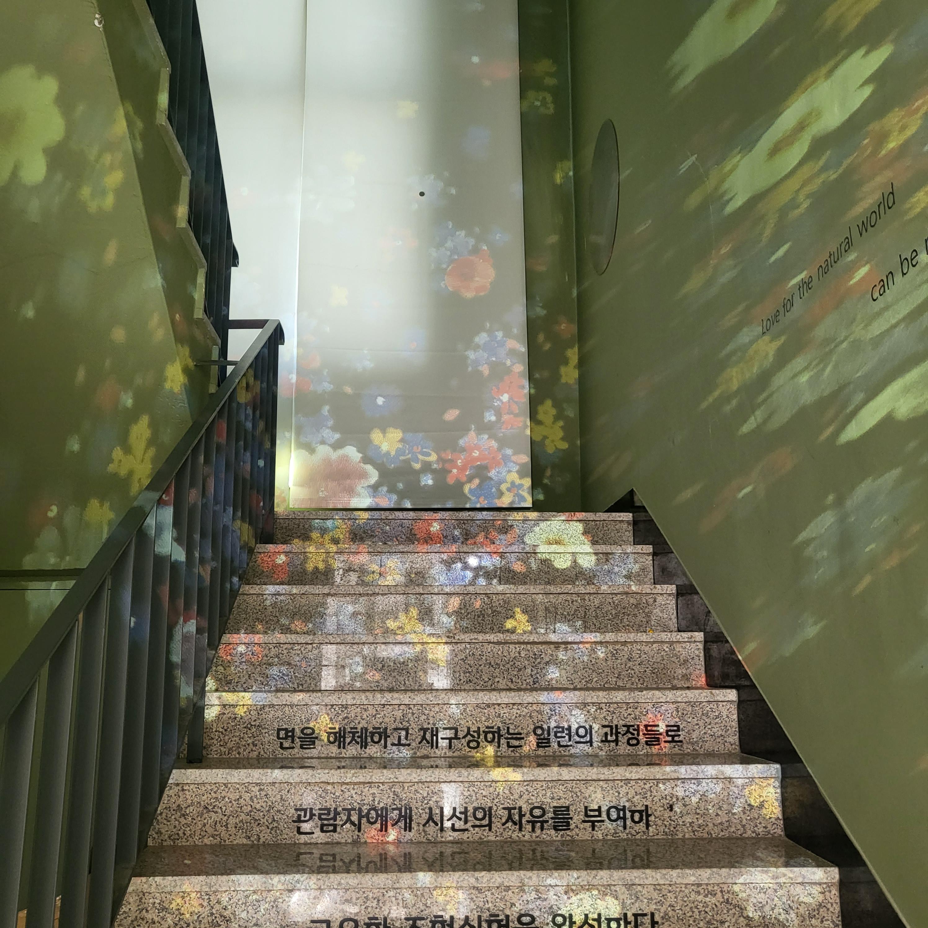 오르는 계단마저도 예쁜 조명으로 전시되어 있어서 걷고 싶은 계단입니다.