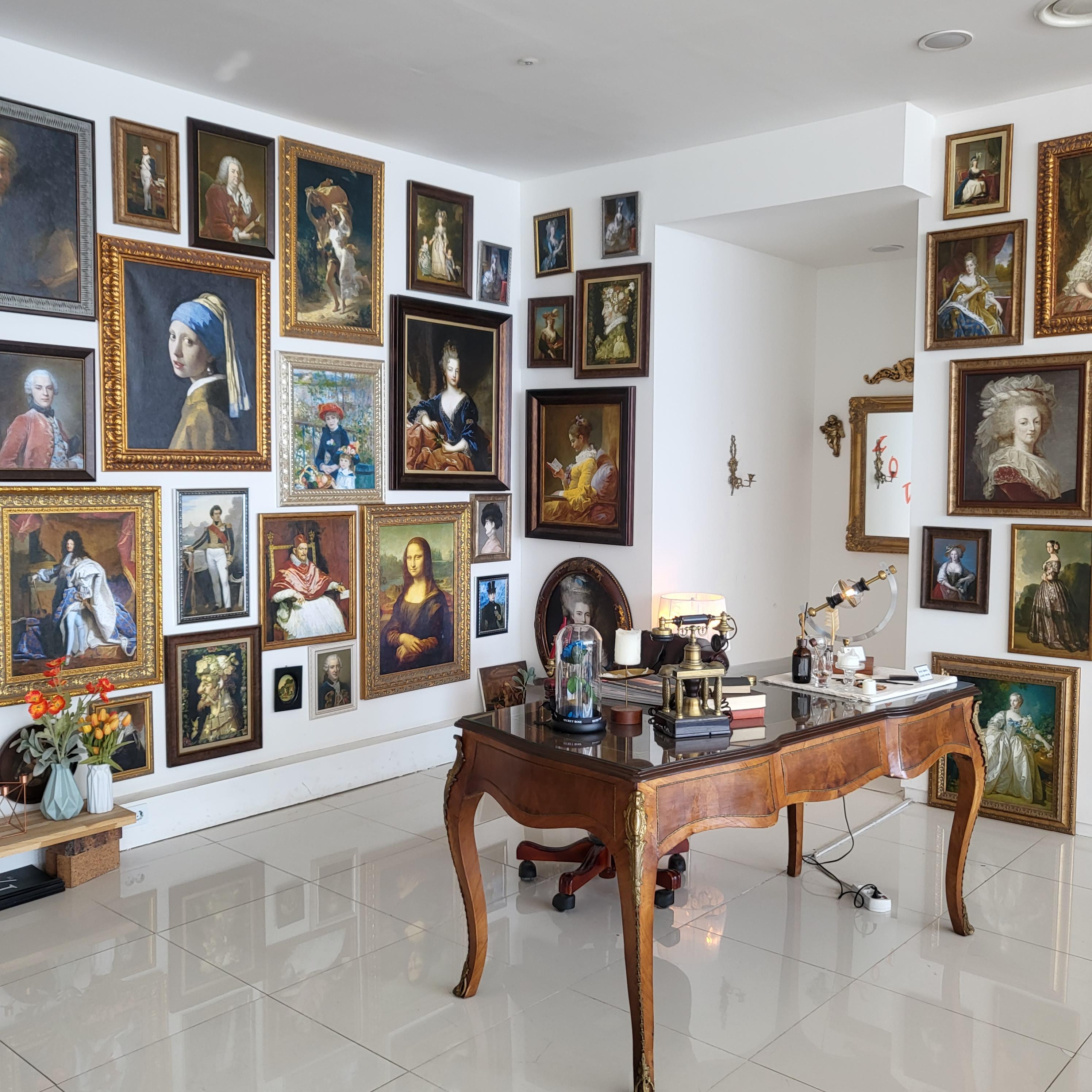 다양한 중세시대 초상화와 엔틱한 가구가 잘 매치되어 있는 멋진 포토존도 있어요.