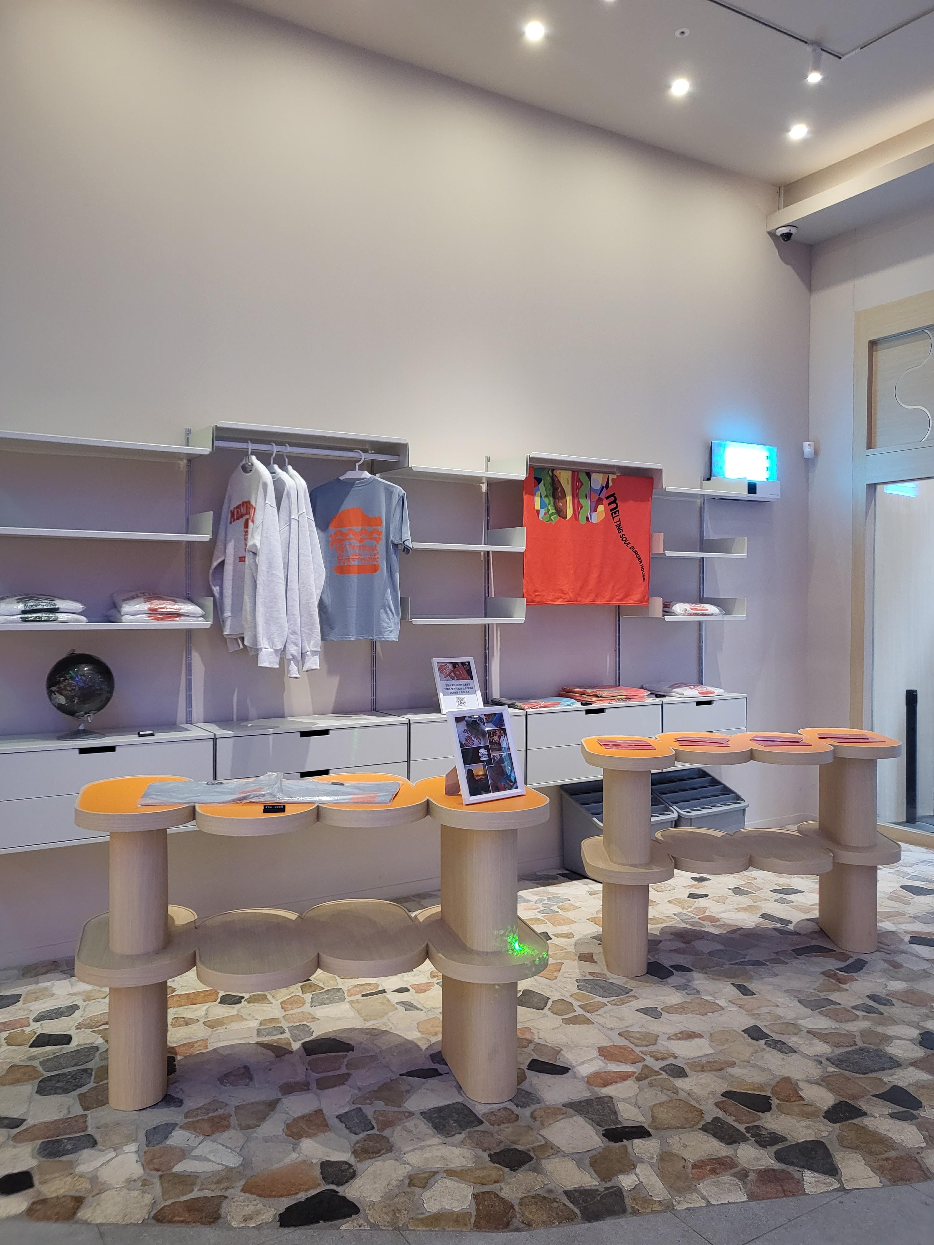 매장에 들어서면 깔끔한 여러 테이블이 매장 안과 밖에 놓여있고 한 쪽에는 여러 굿즈들도 판매하고 있어요.