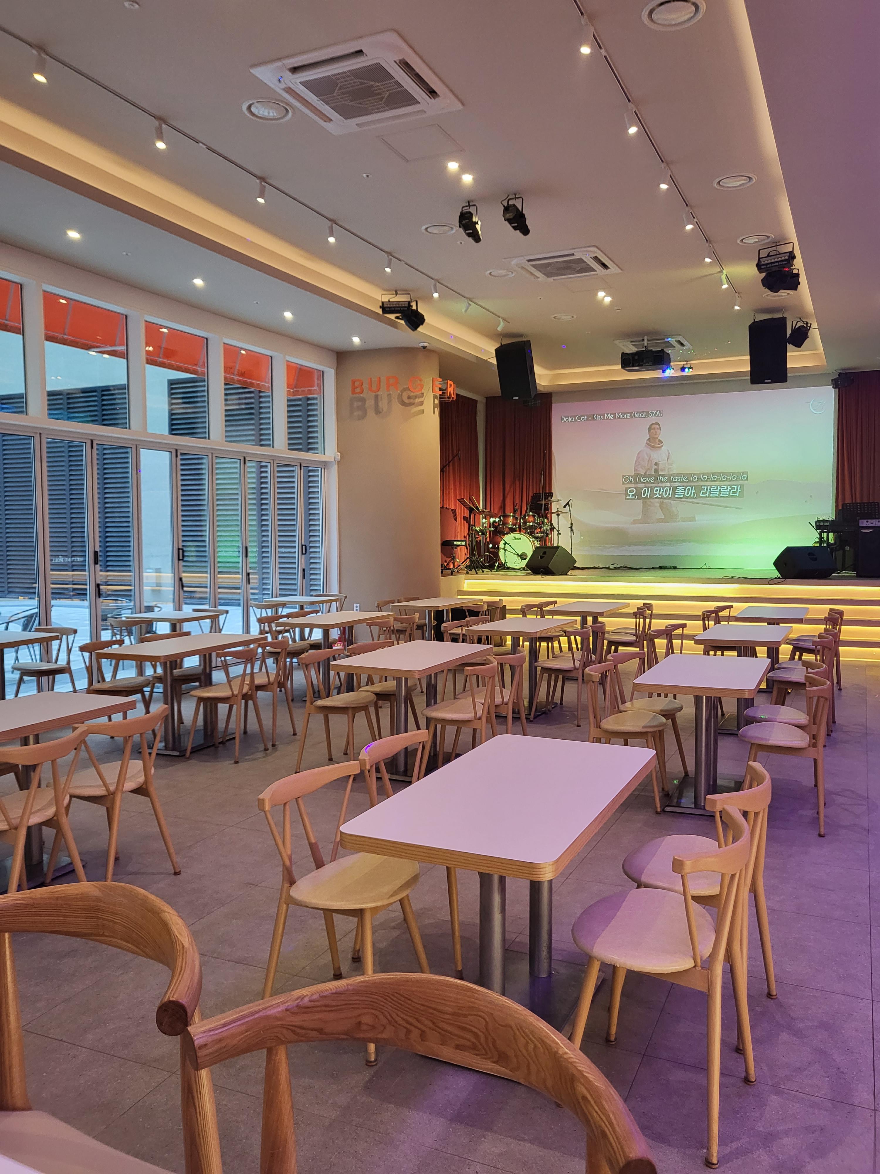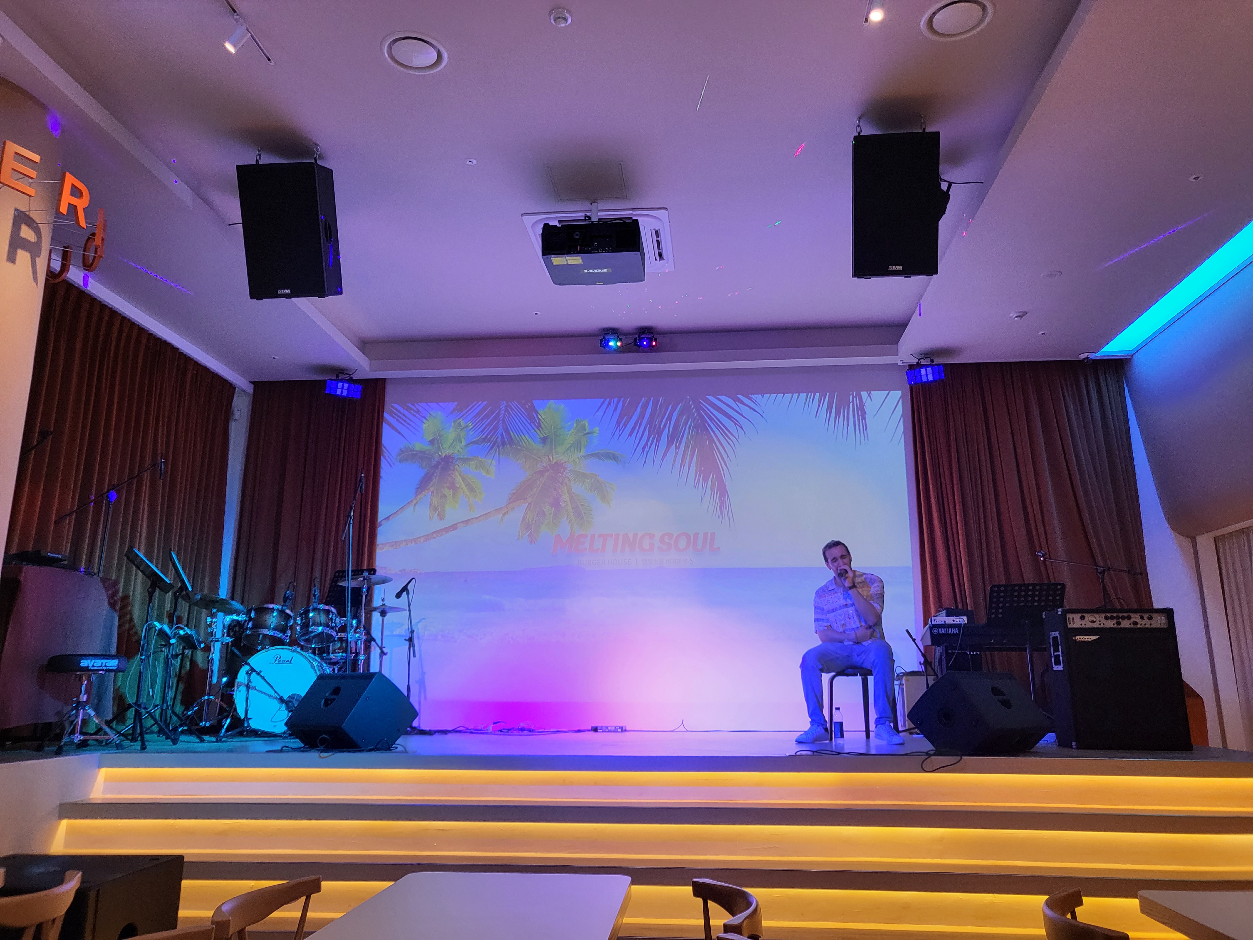 앞쪽에는 무대가 조성되어 있어요. 여기서 라이브 공연이 이어집니다.