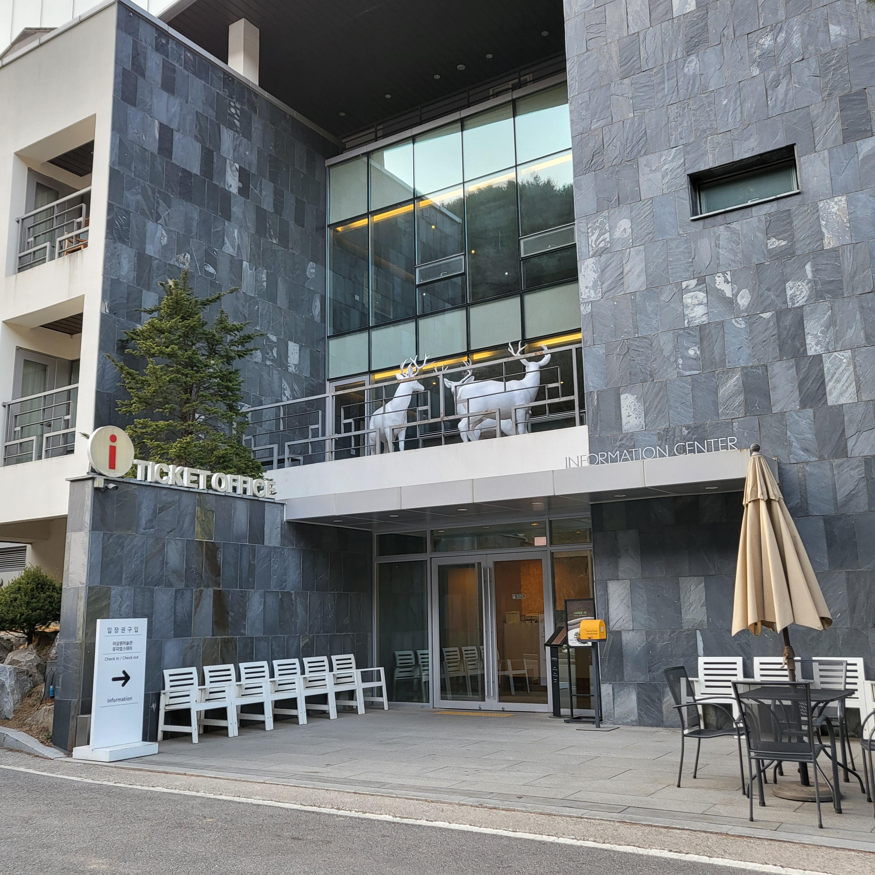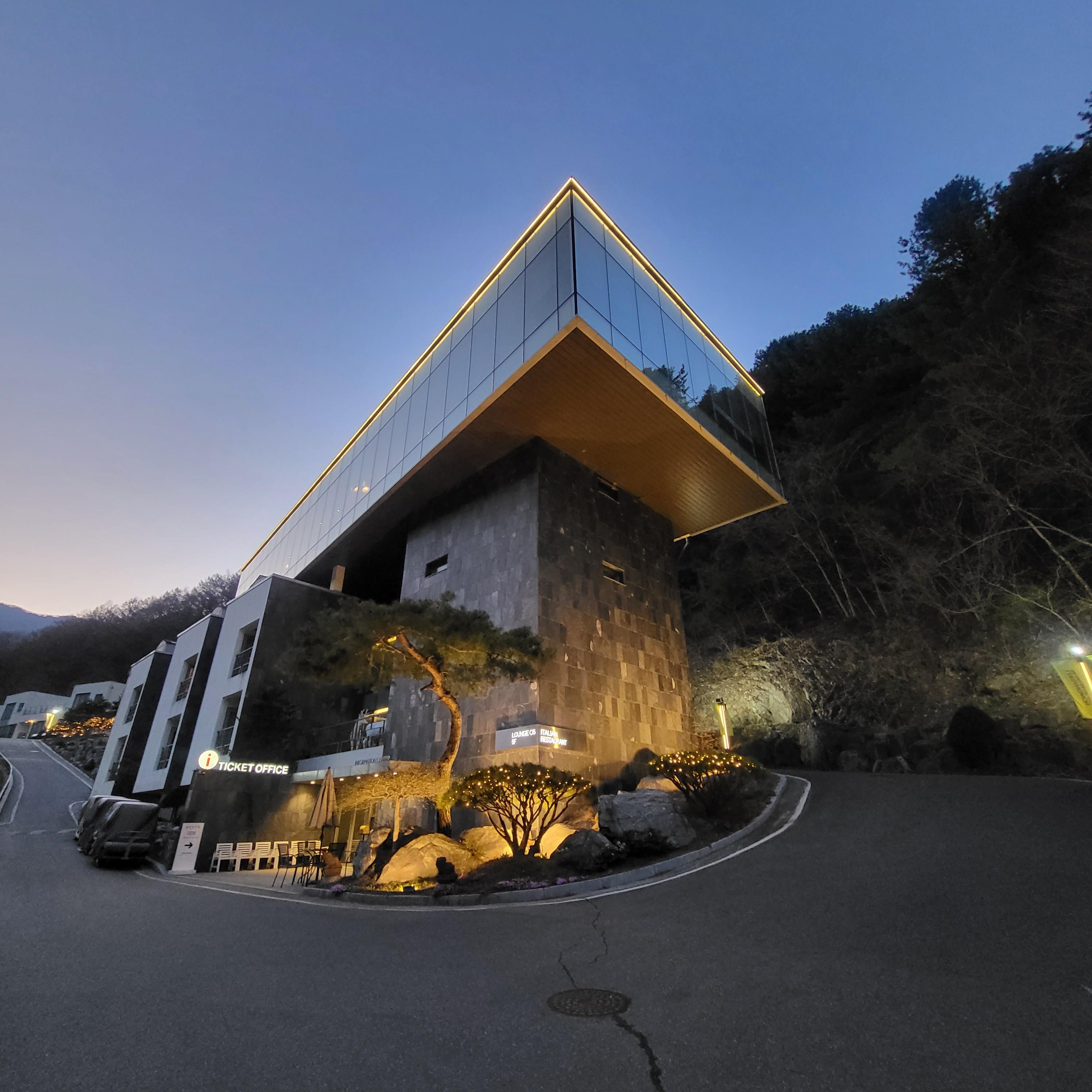 입구에 들어서자마자 바로 보이는 건물이 라운지05레스토랑이에요. 깔끔하고 독특한 건물이네요.