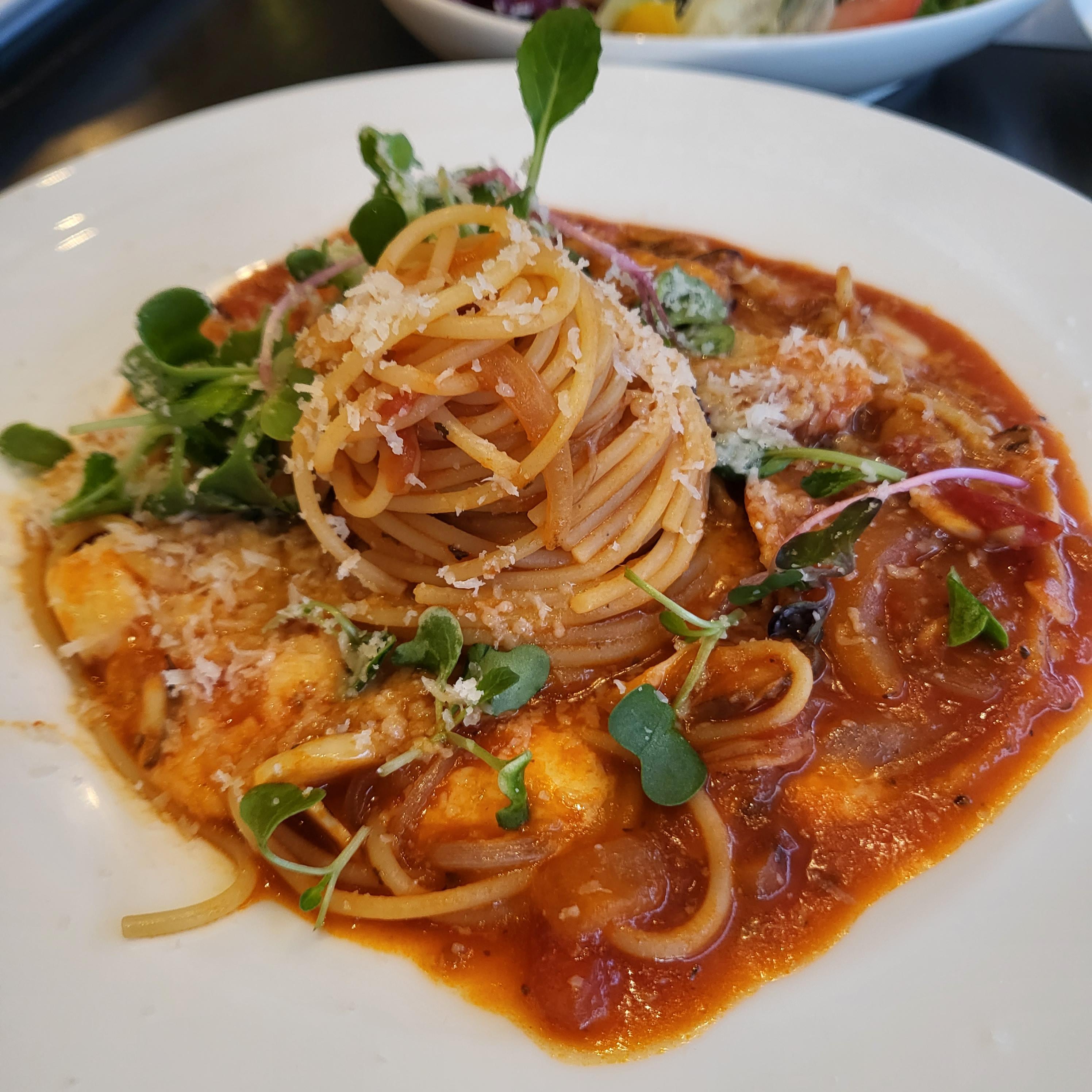 뒤이어 파스타와 샐러드가 나왔어요. 신선한 샐러드와 파스타는 좋은 재료가 듬뿍들어가 있고 입맛에도 잘 맞았어요.