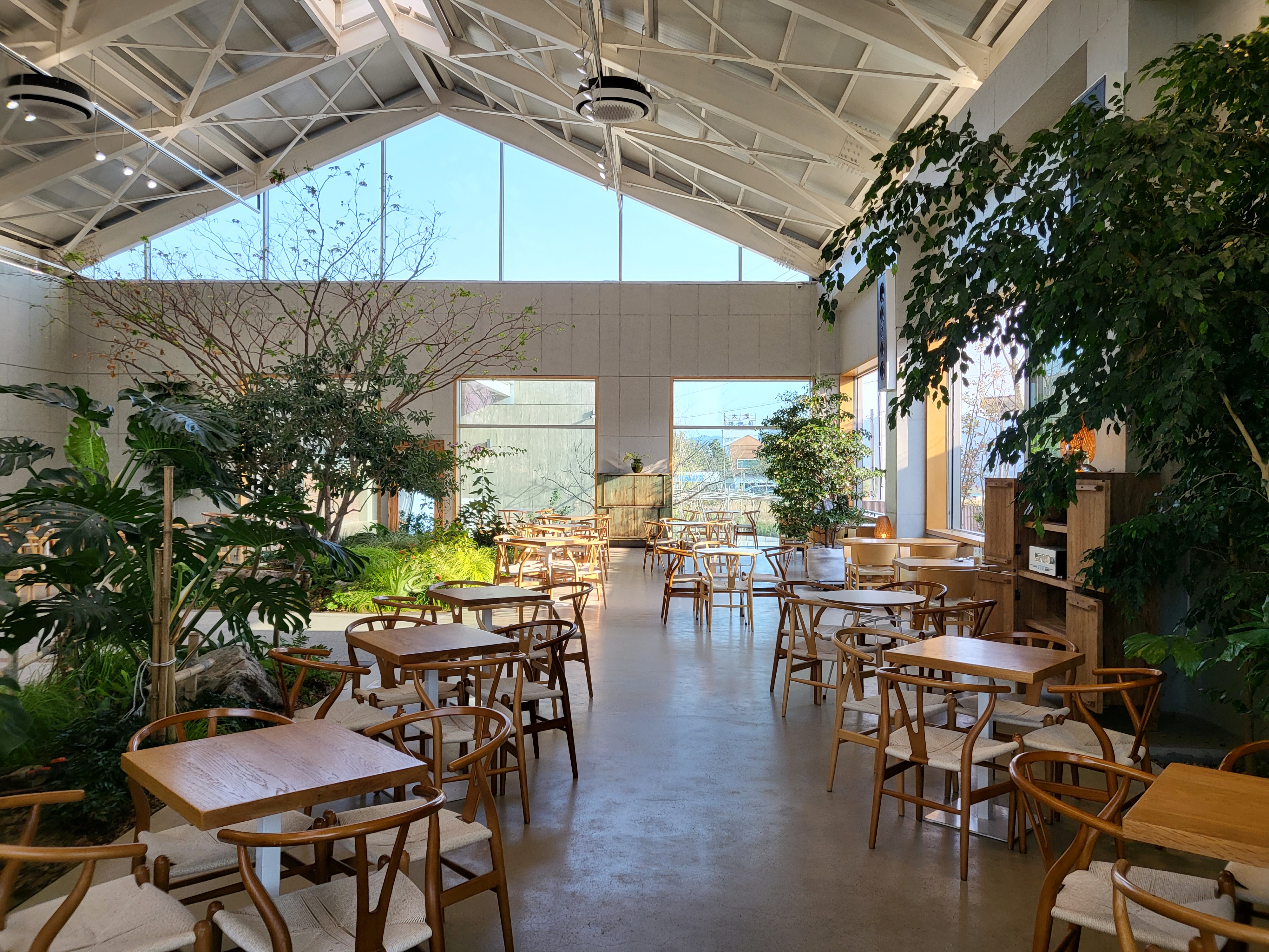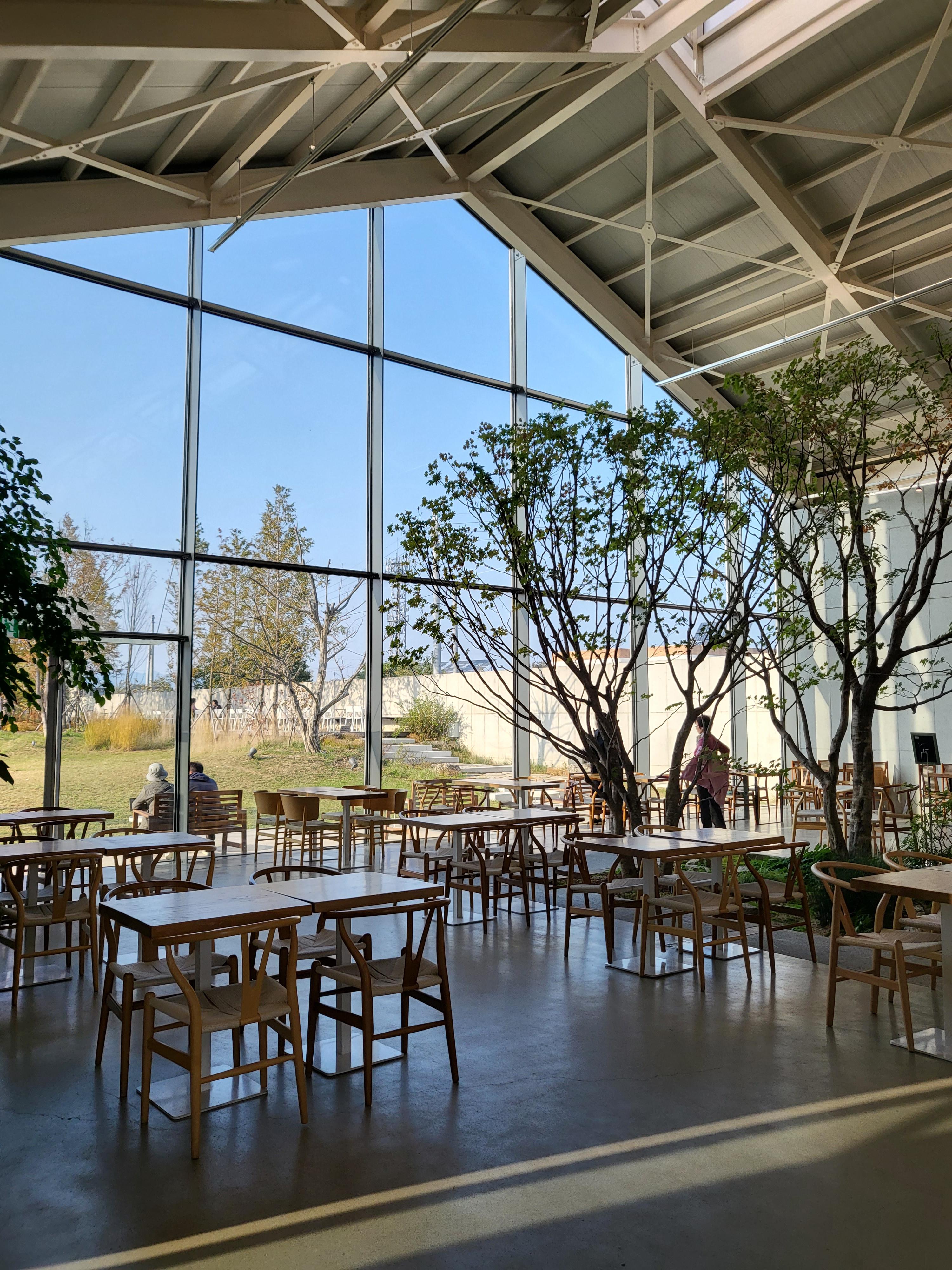 개방감 좋은 시원시원한 통유리 밖으로 야외 정원을 볼 수 있고 날이 좋은 날에는 저 멀리 설악산도 보인다고 하네요.