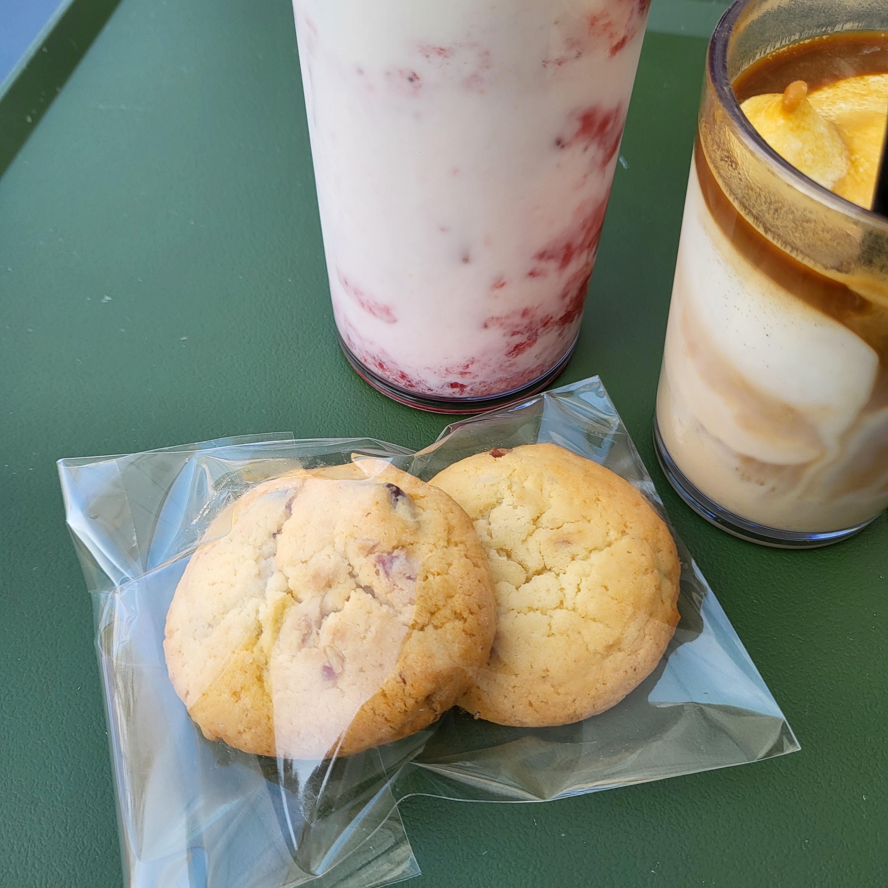네이버 영수증 이벤트로 쿠키도 받았어요. 일행이 있어도 각각 영수증 리뷰를 작성하면 1인 1개씩 주네요. 서비스로 받은 쿠키지만 맛은 정말 고소하고 맛있었어요.