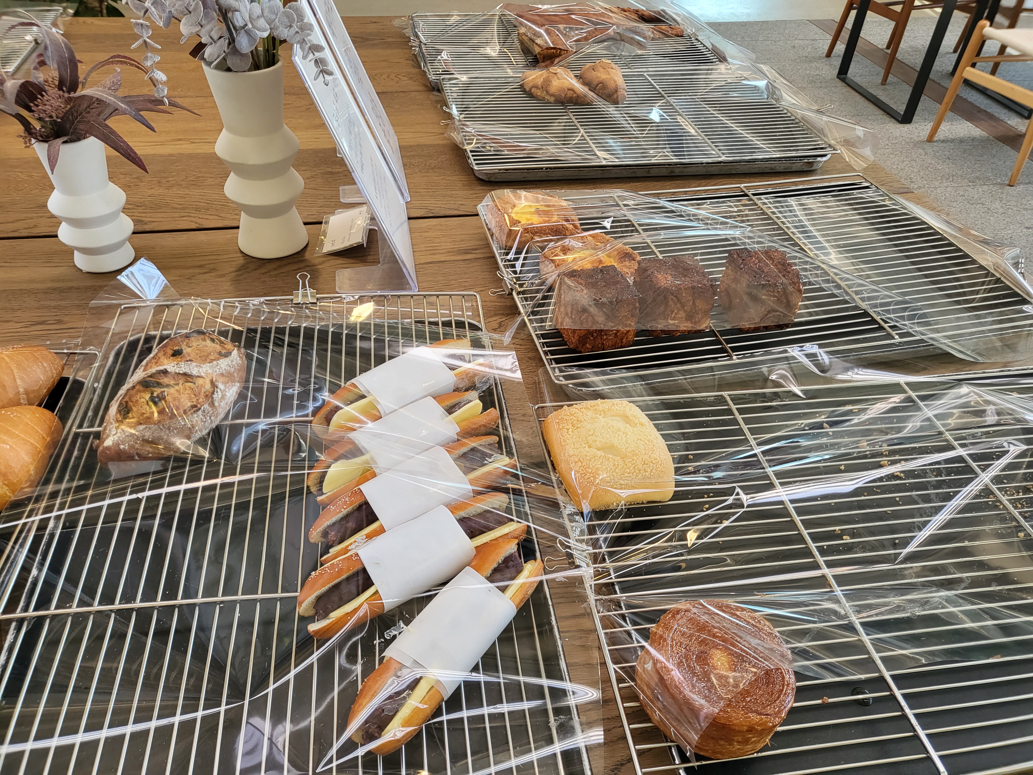 사진에는 많이 비어보이지만 크루아상, 밀푀유, 페스츄리, 소금빵, 케잌 등 다양하고 신선한 베이커리가 디피되어 있어요.