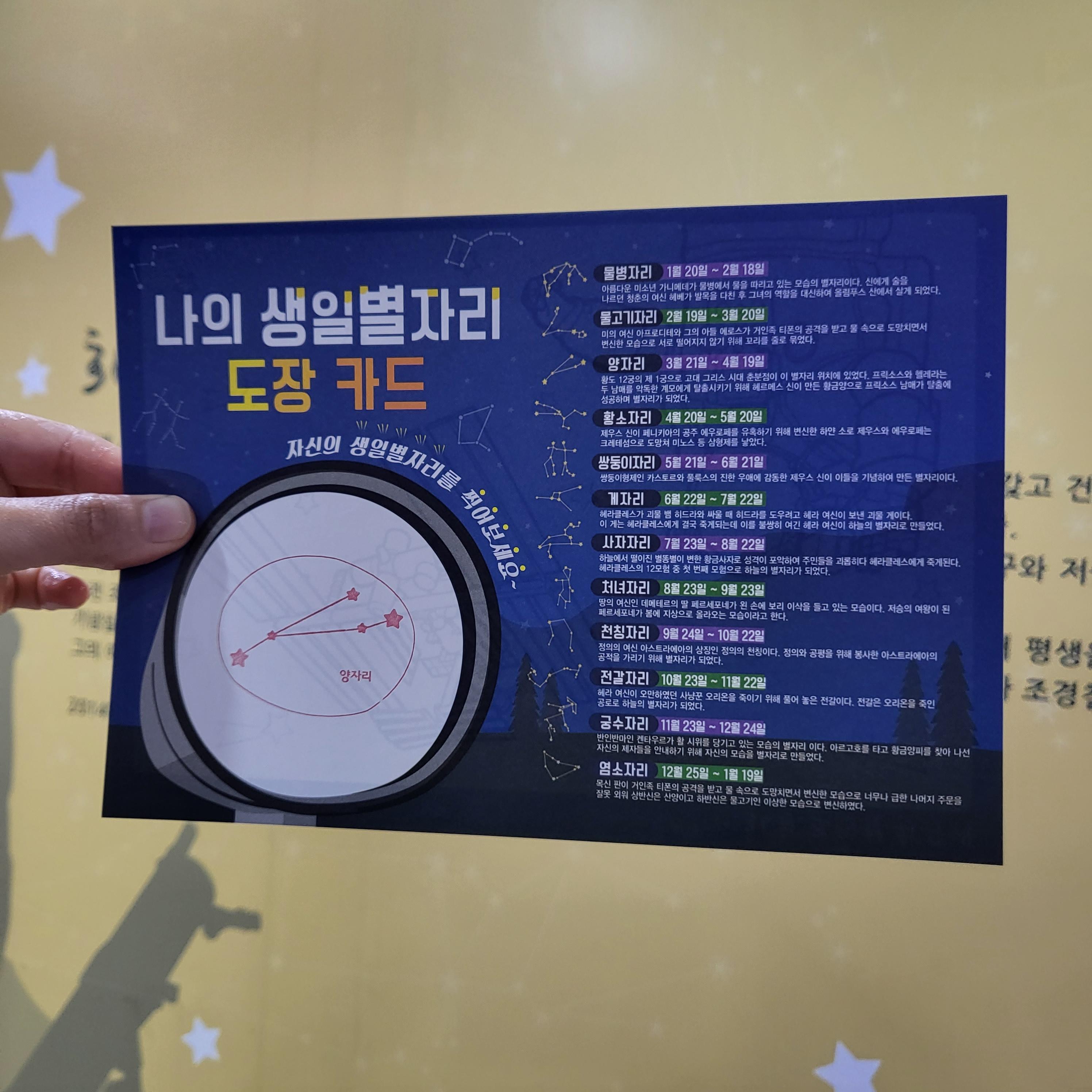 나의 생일 별자리 도장카드도 있어서 12개의 도장 중에 본인 별자리를 찾아 스탬프를 찍어 기념으로 가져갈 수 있어요!