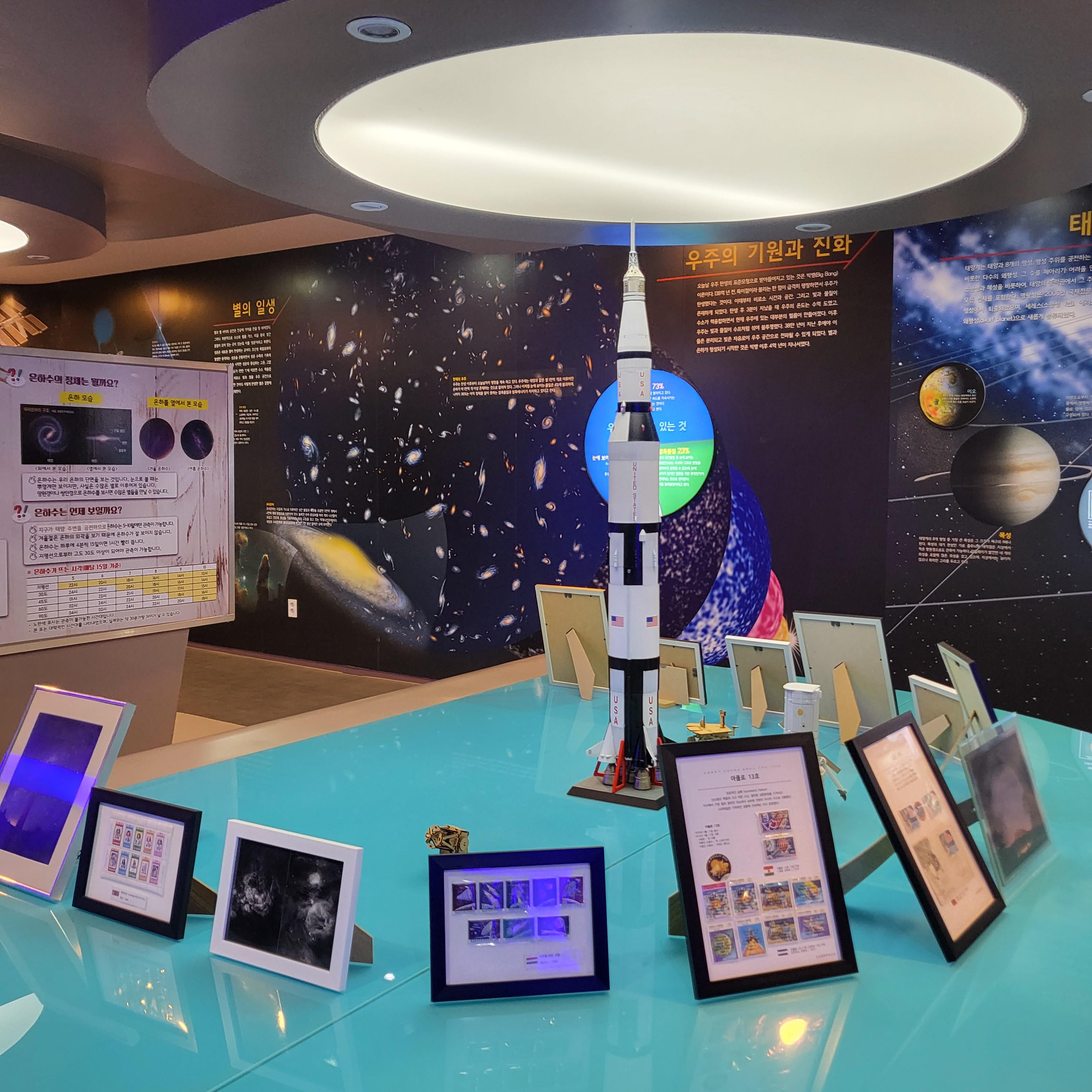 별을 관측하는 인원이 어느 정도 모이면 30분 단위로 직원을 통해 별자리 설명을 들으며 별을 관측할 수 있는데요 인원이 모이기 전에 시간이 남아서 먼저 1층의 천문 우주 전시실을 둘러봤어요. 깔끔한 시설에 보 체험할 수 있는 부스가 잘 조성되어 있어요.