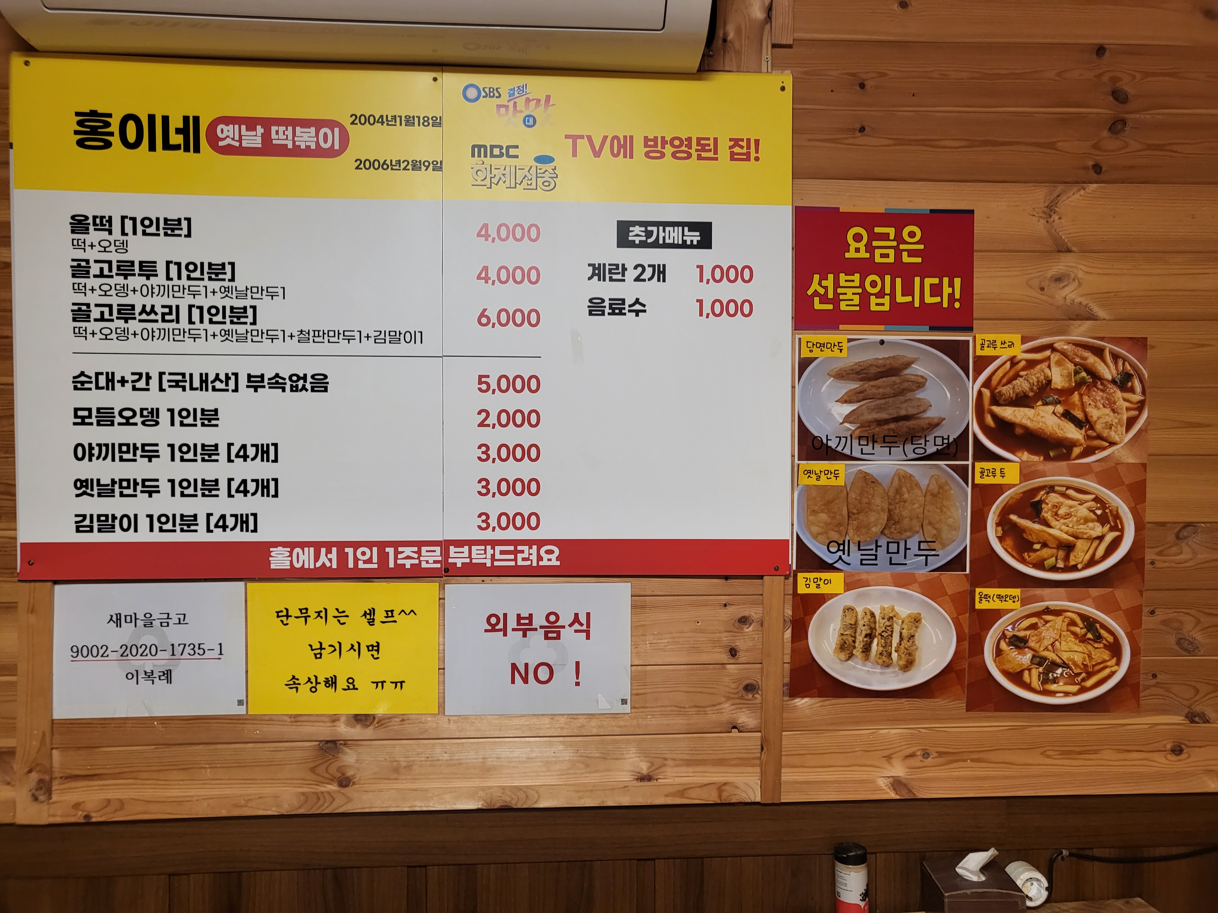 실내 식사도 가능하고 포장도 가능합니다. 자리를 잡고 앉아있으면 이모님이 오셔서 주문을 받습니다. 요금은 선불이고 카드도 가능하네요.