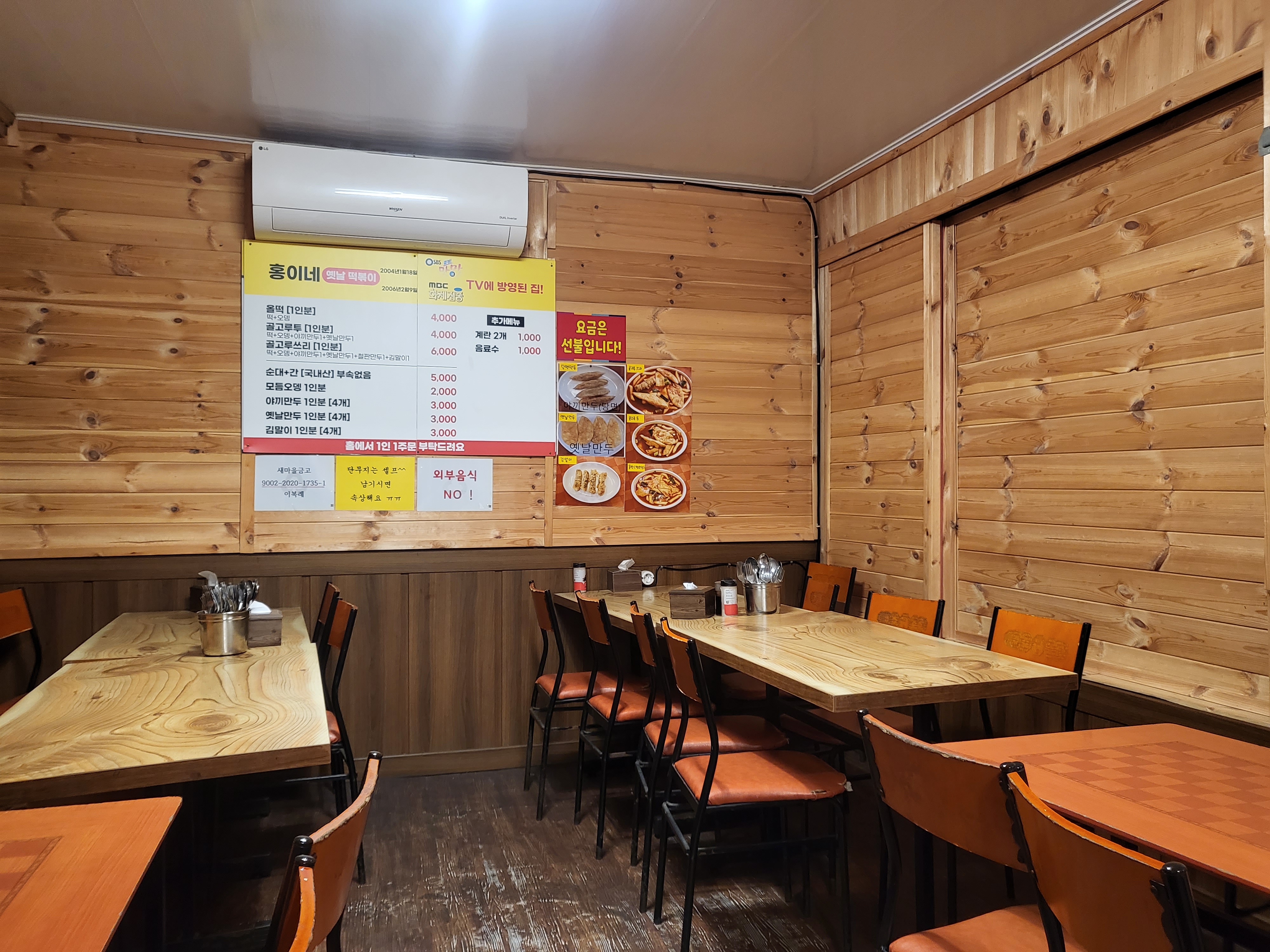 그중에서도 학창 시절 학생들 사이에 TOP3 안에 들었던 홍이네 떢볶이집을 오랜만에 다녀왔습니다. 실내는 요즘 떡볶이집처럼 세련미는 없지만 옛날 떡볶이집답게 학창시절의 흔적이 남아 있는 듯 바닥은 낡고 오래된 흔적들이 보입니다.