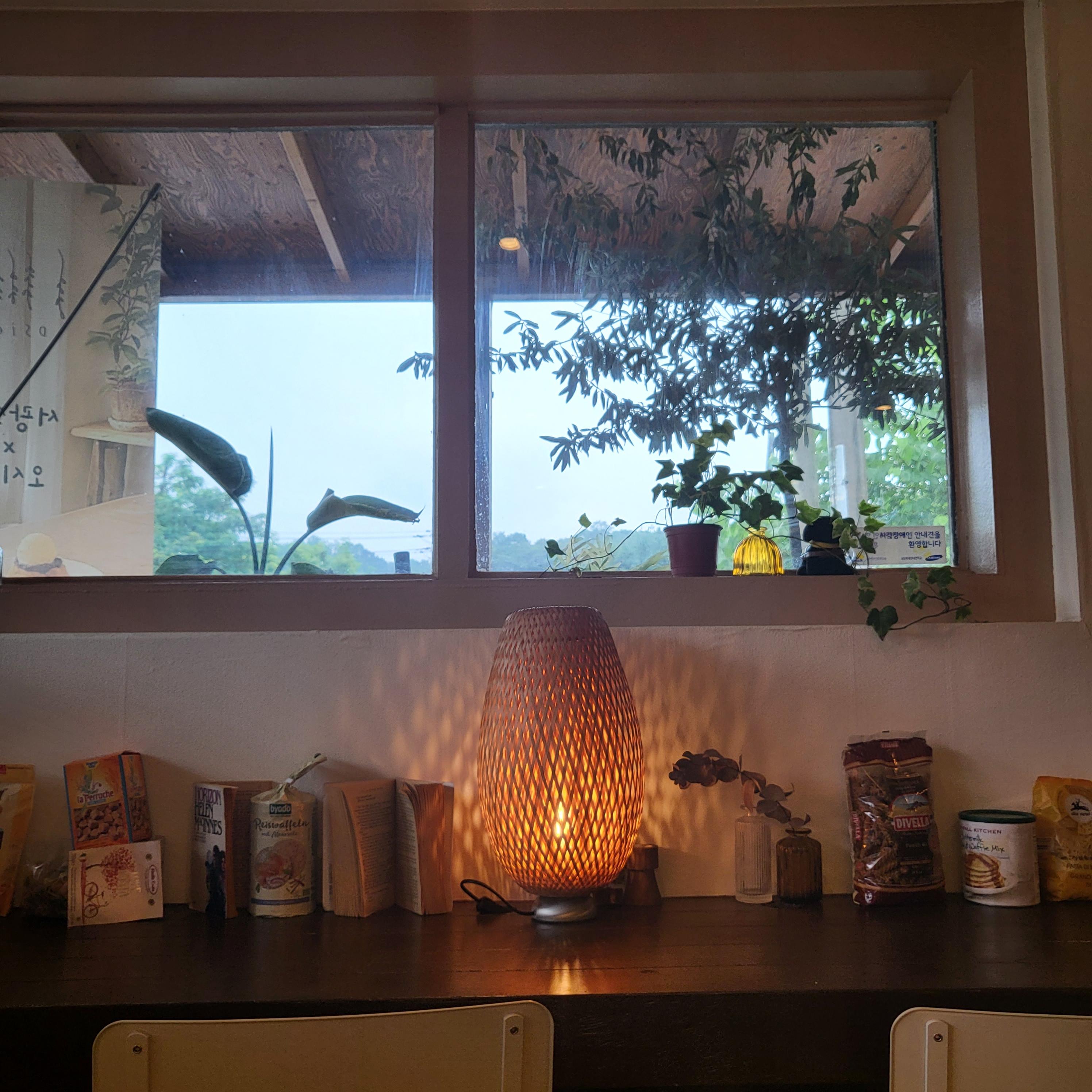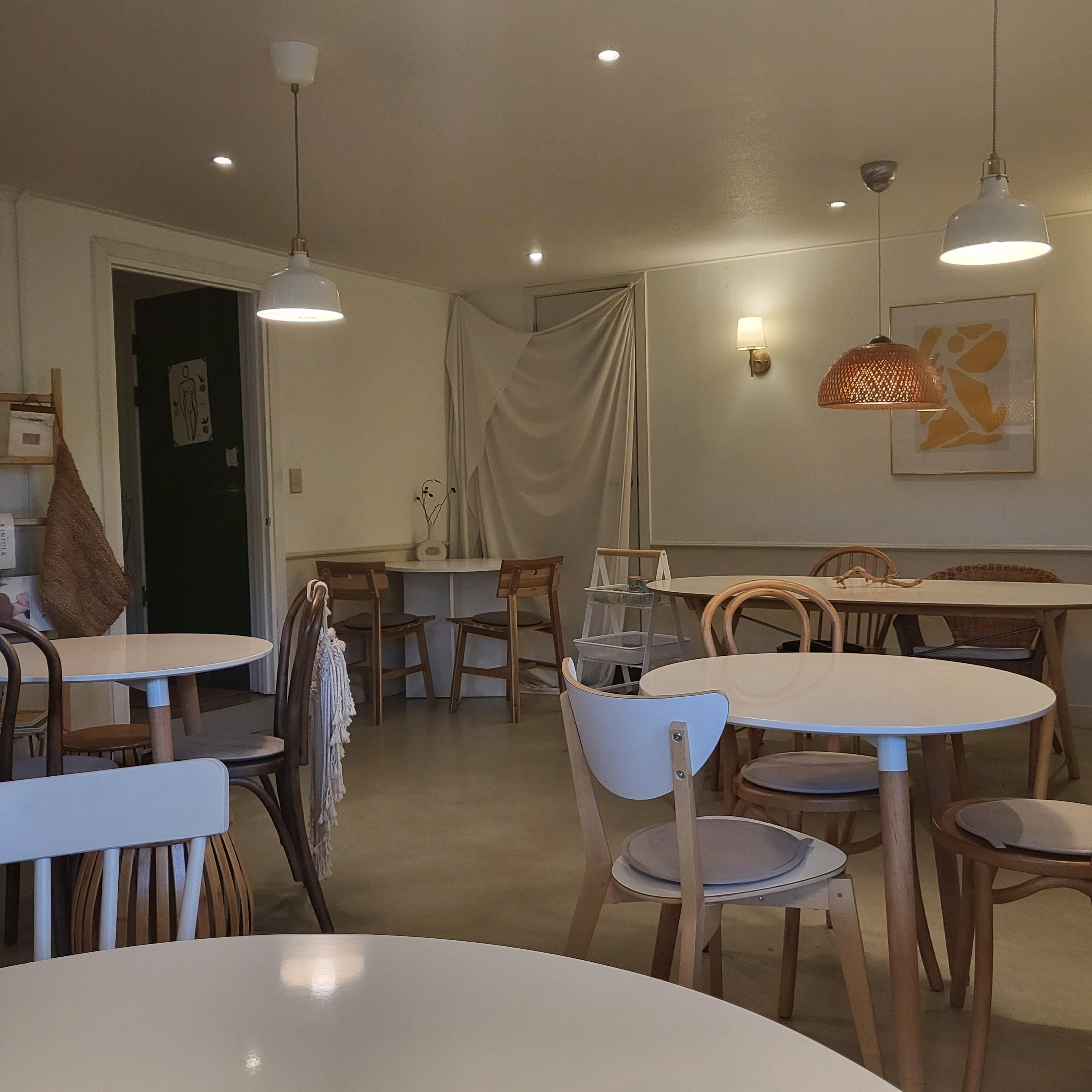 허름한 겉모습과는 달리 아담한 실내공간은 우드와 화이트 톤의 깔끔한 테이블과 은은한 조명, 그리고 아기자기한 소품들로 가득한 반전 매력을 감추고 있었네요.