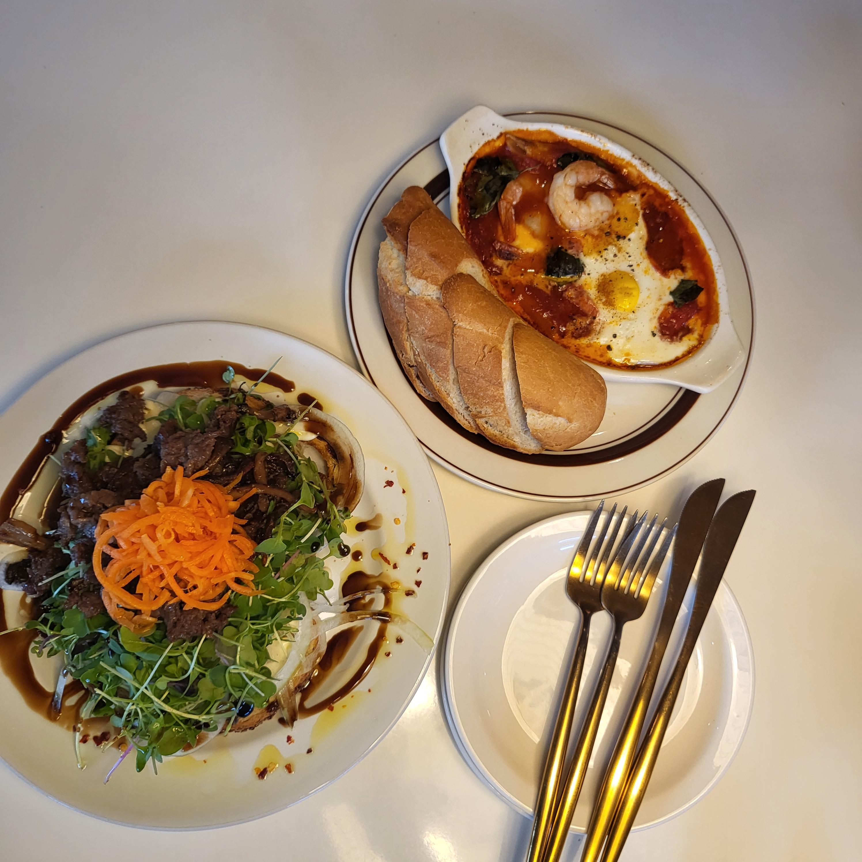 메뉴는 많지 않아요. 몇 가지 메뉴에만 신경을 많이 쓴 거 같아서 더 좋네요. 시그니처 메뉴인 에그인헬과 불고기 타르틴을 주문했어요.