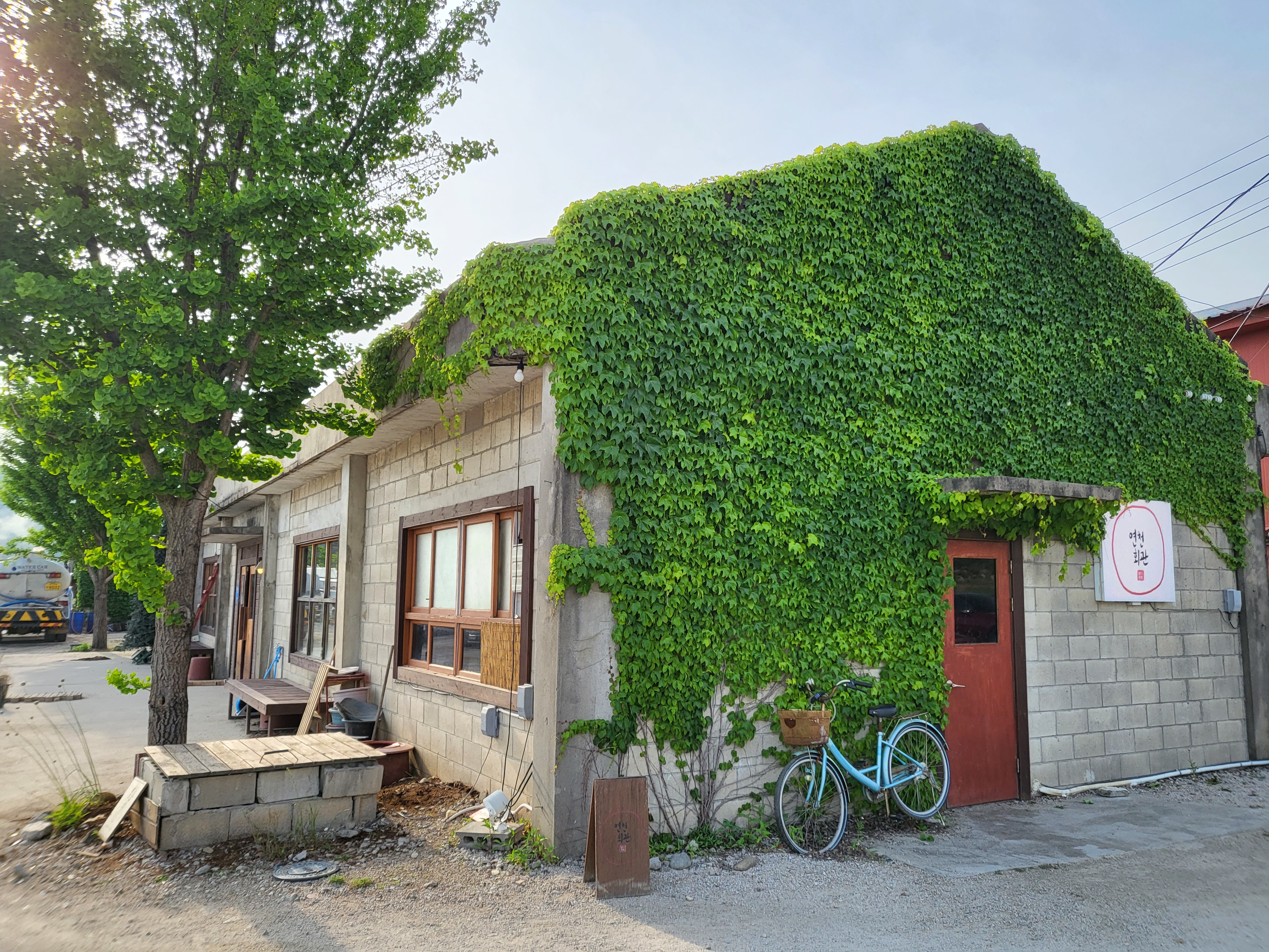 담쟁이넝쿨로 둘러 싸인 외벽이 시멘트 벽돌과 대비되어 더욱 멋스럽고 레트로한 느낌을 주네요.