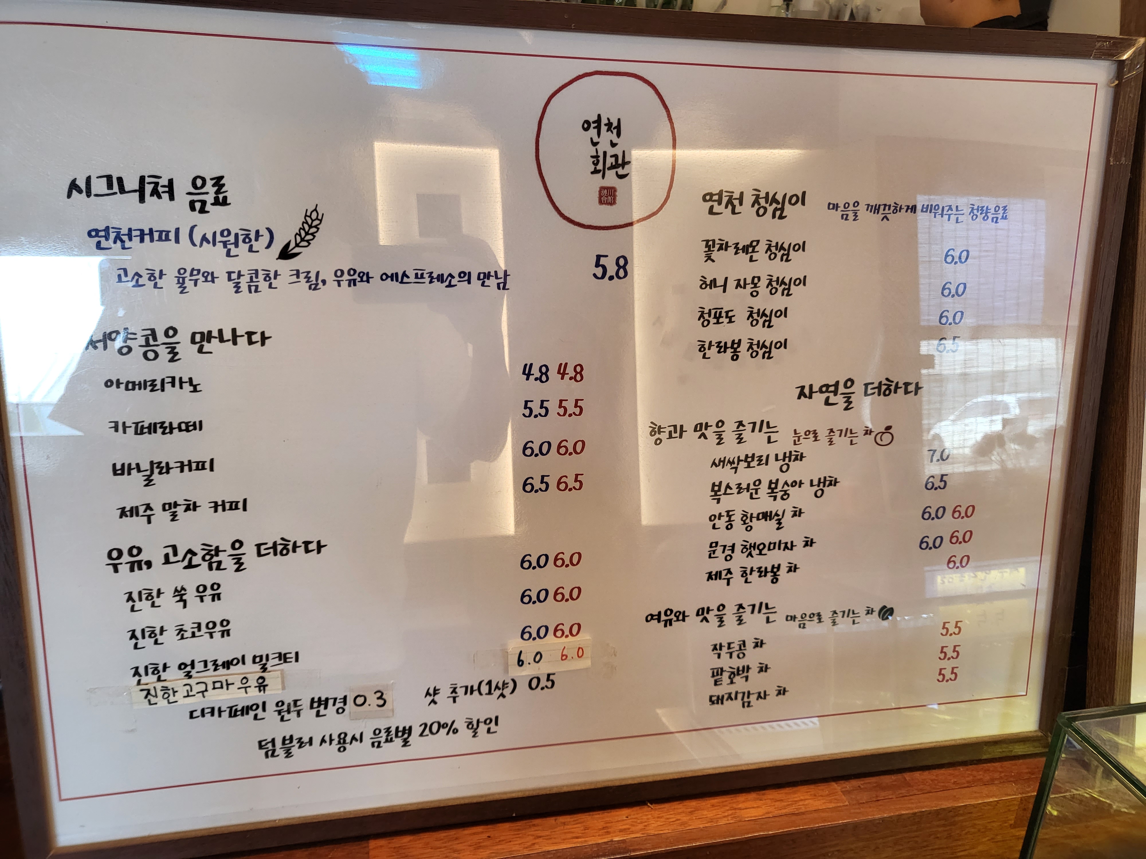 고소한 율무와 달콤한 크림 그리고 우유와 에스프레소와 만남이라는 시원한 연천커피가 이 카페의 시그니처라고 하네요