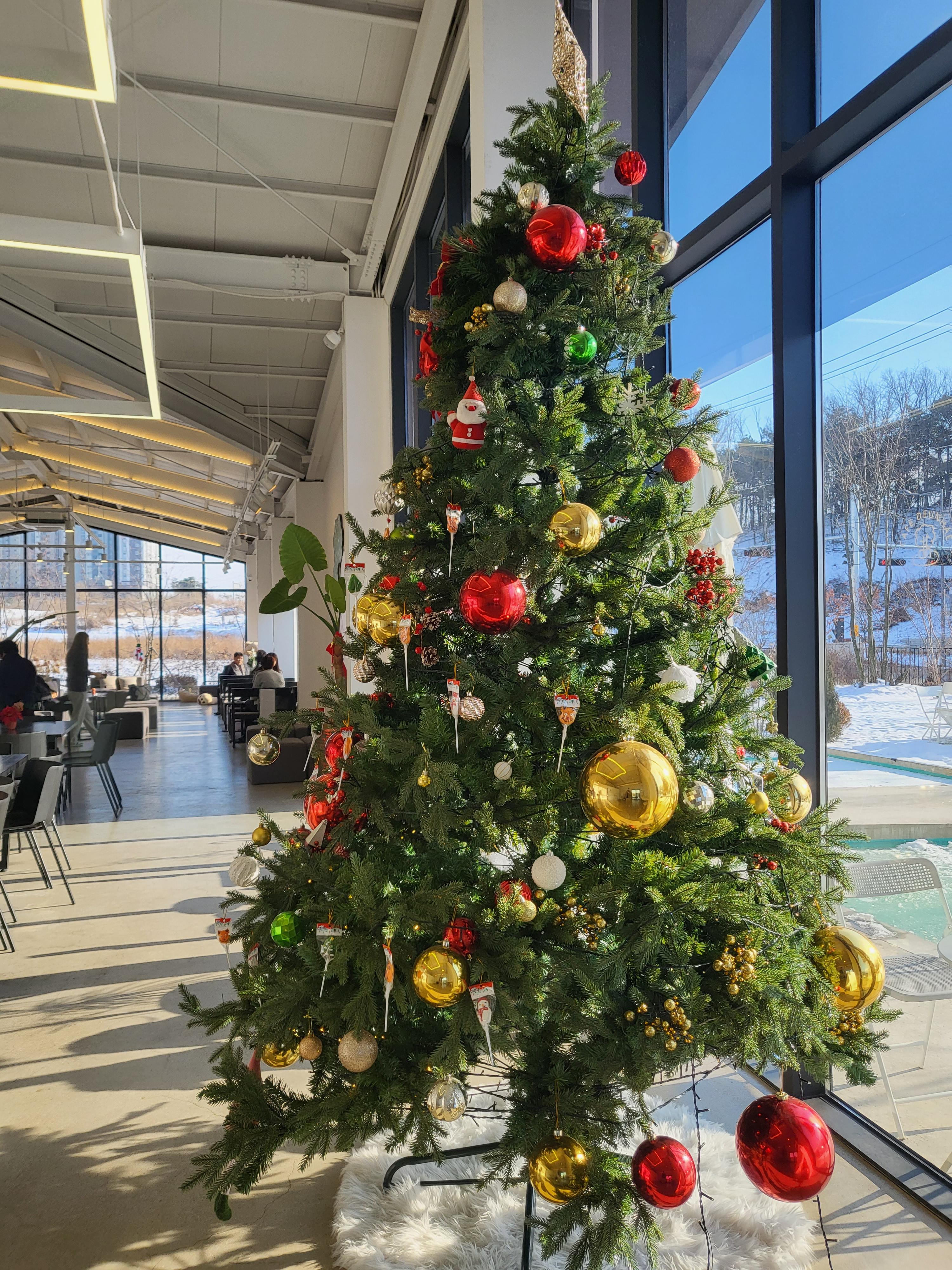 알록달록 예쁘게 꾸며진 성탄트리가 실내 분위기를 더욱 환하게 합니다.