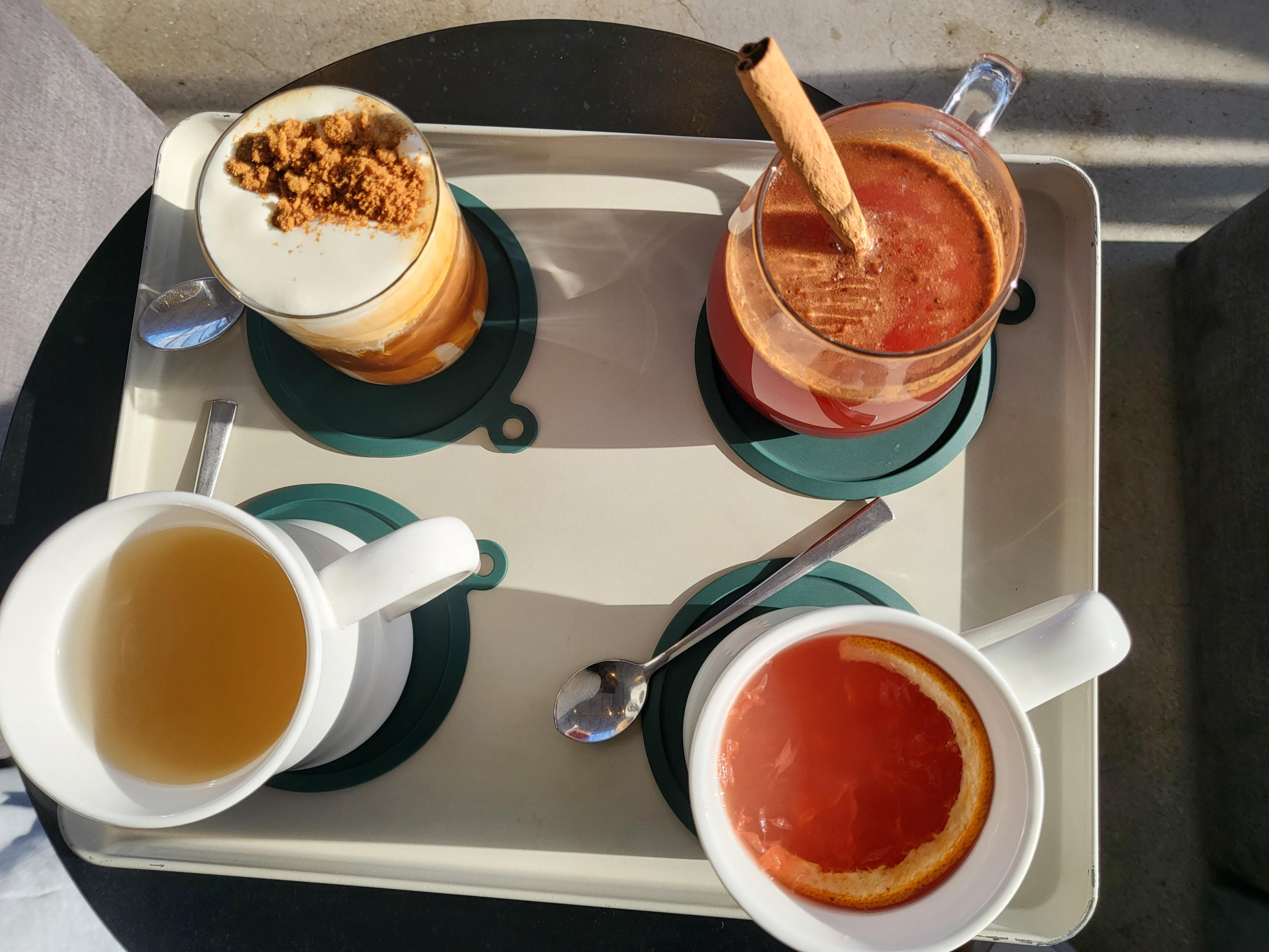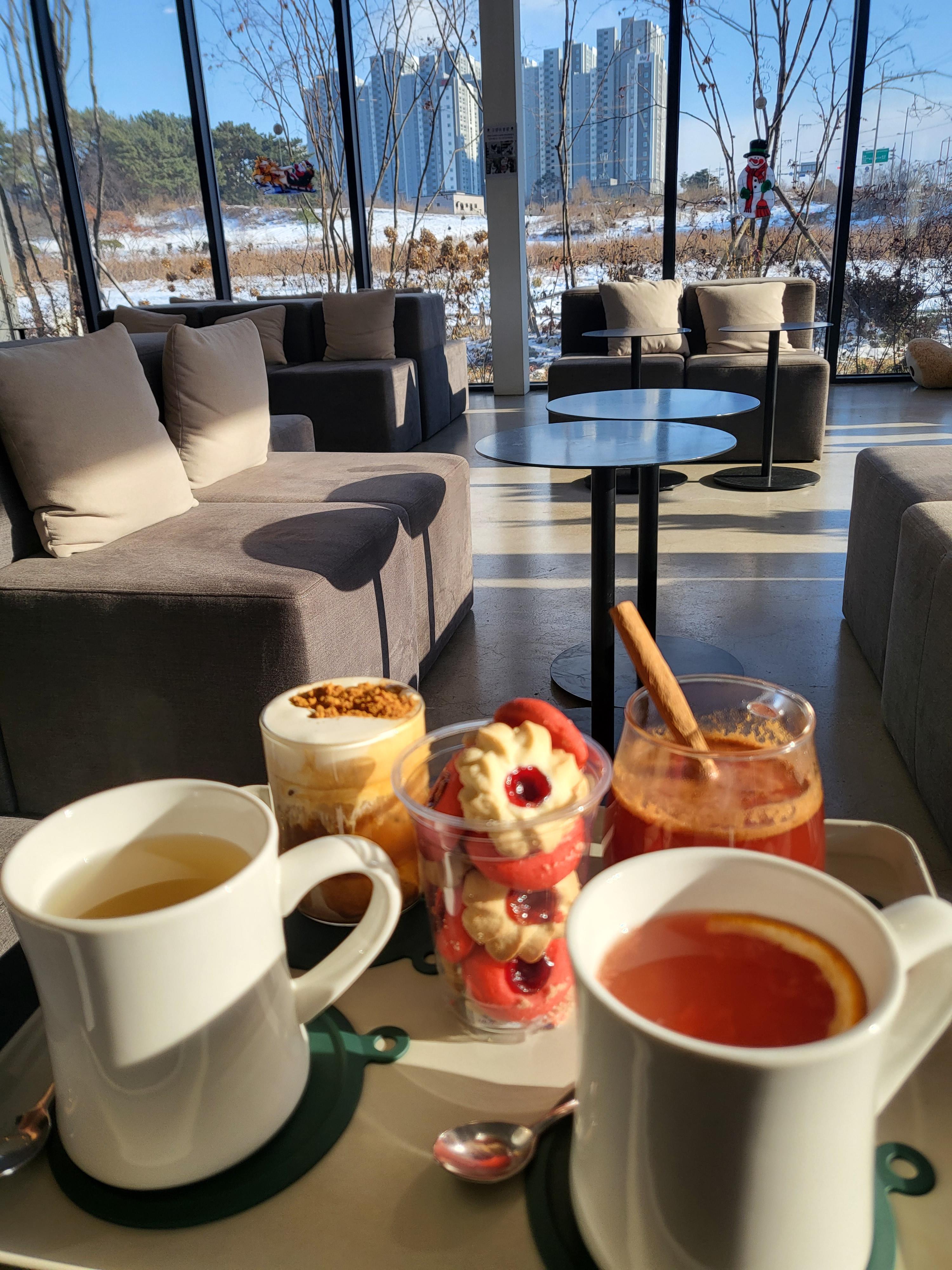 주문한 차와 커피가 나왔어요.