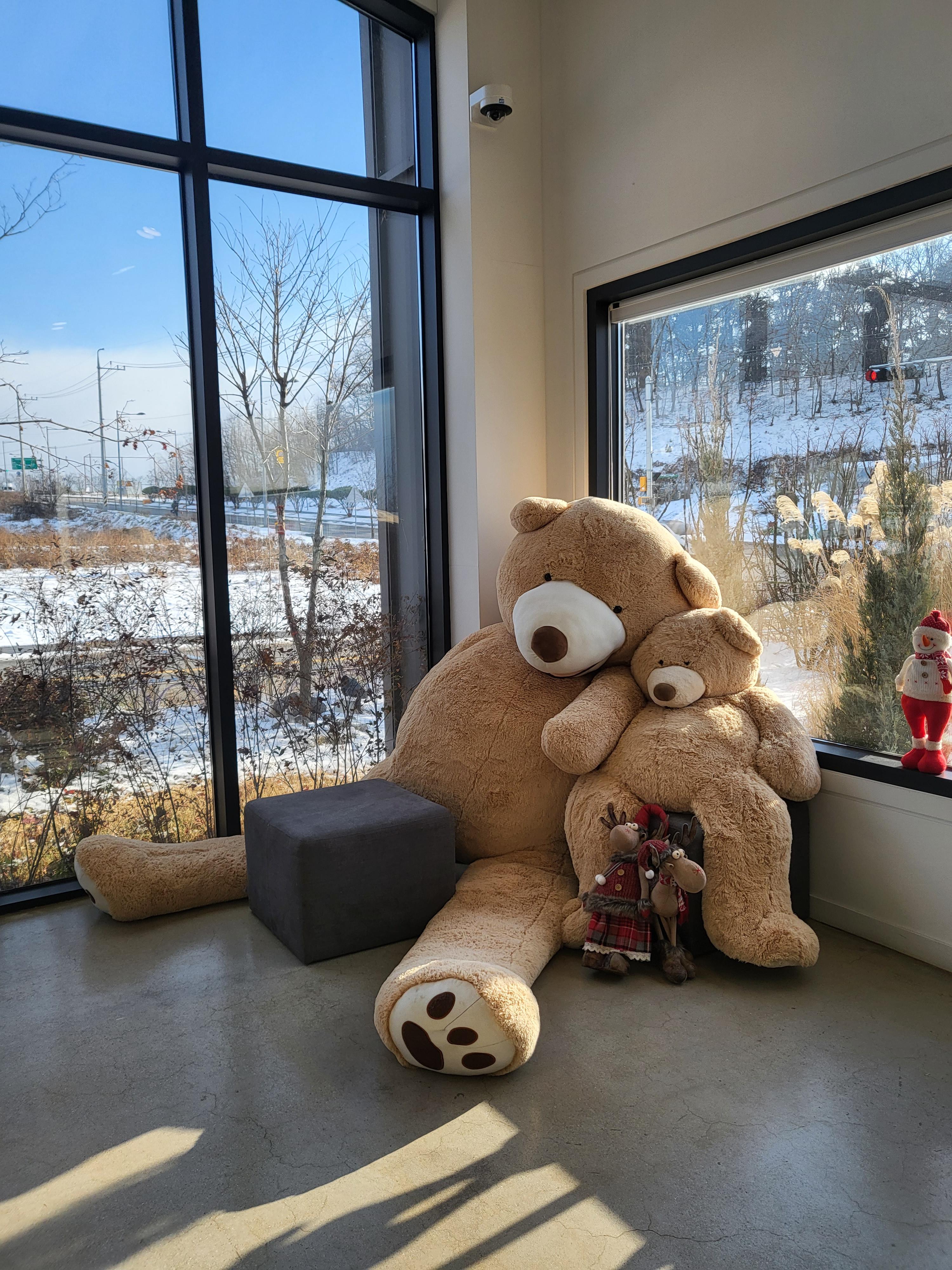 한쪽에는 사람보다 훨씬 큰 포근해 보이는 엄마곰과 아기곰이 앉아 있어요.
