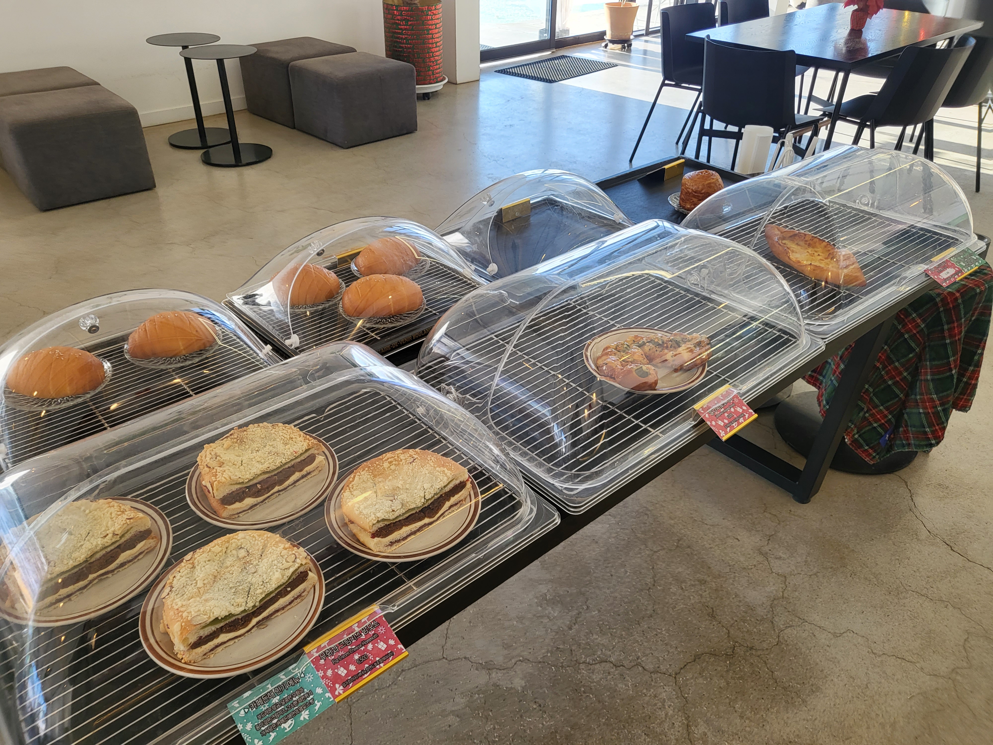 디저트 종류도 다양한데요 먹음직스러운 쿠키와 빵 종류가 있어요.