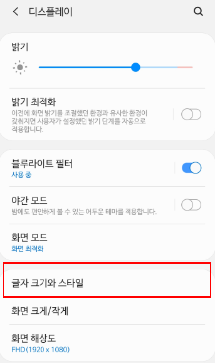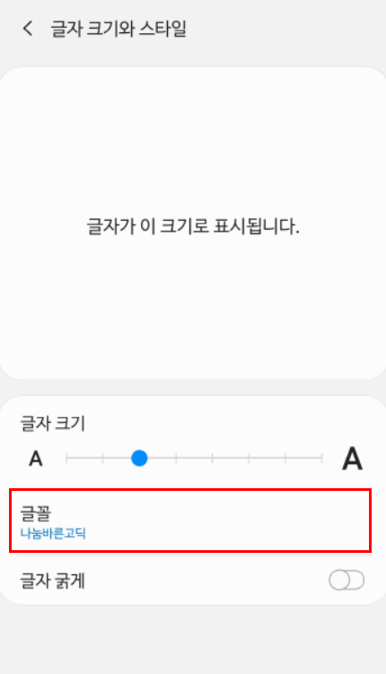 디스플레이 > 글자크기와 스타일을 선택해 주세요