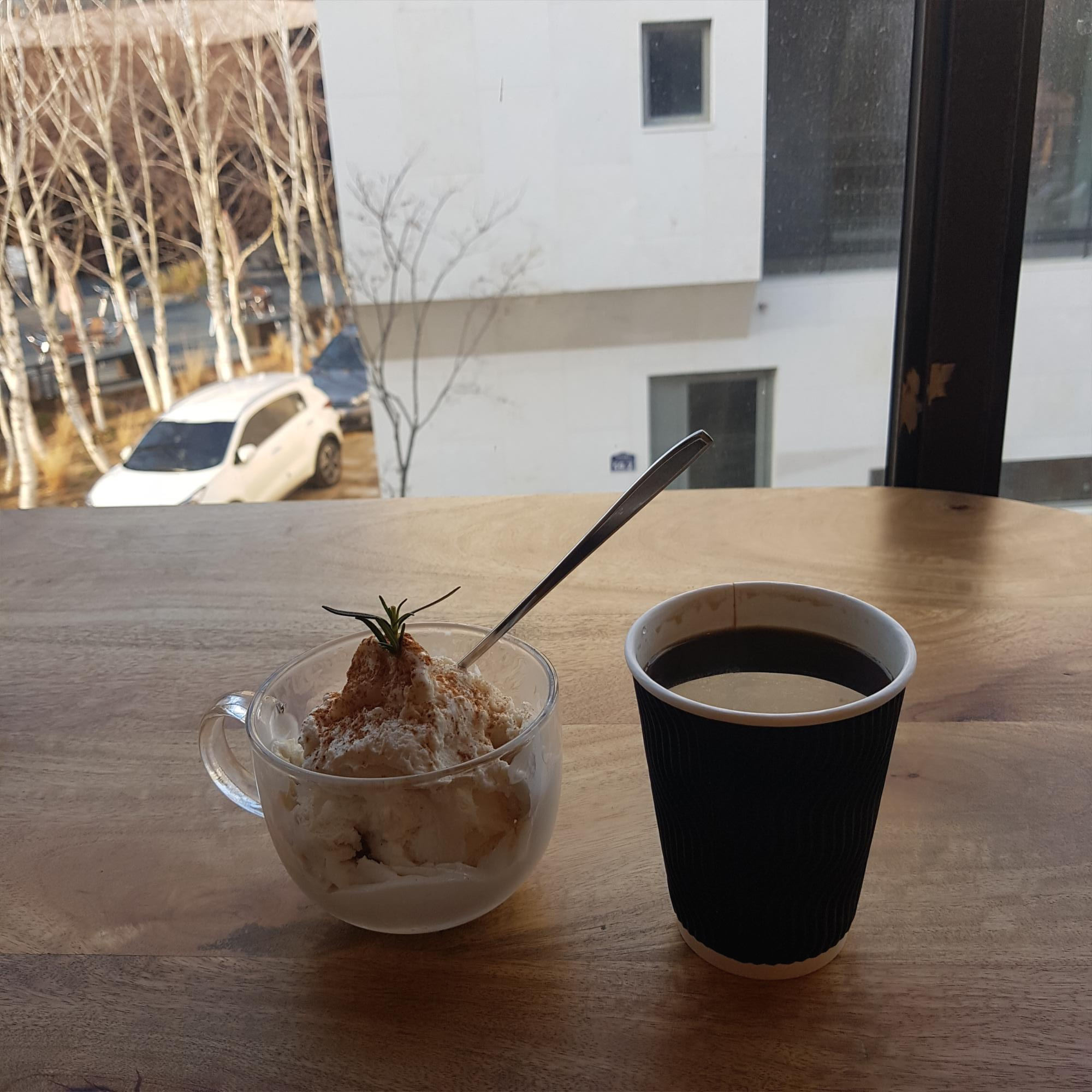 따뜻한 커피와 젤라또를 주문했어요