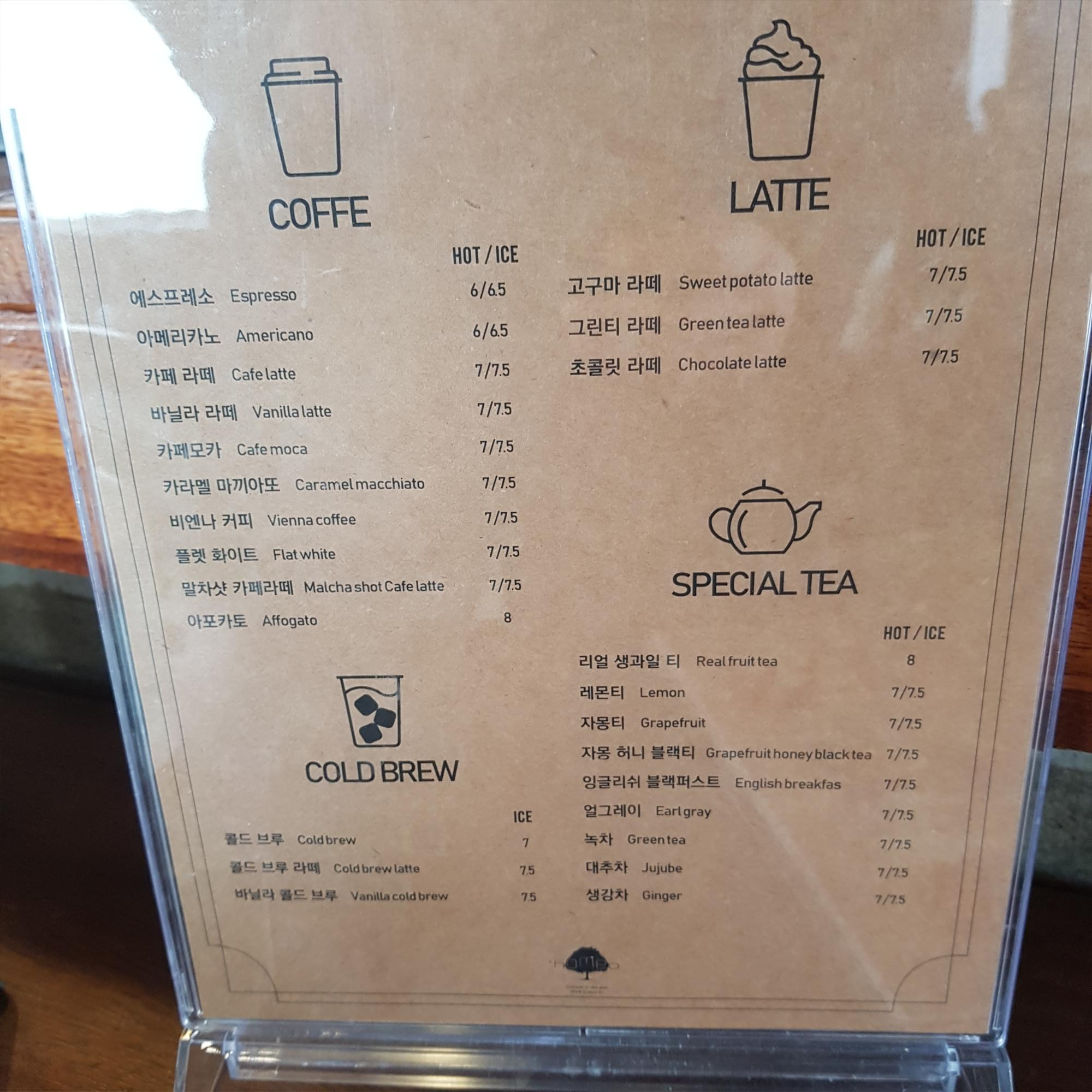 호메오 카페 주문한 음료의 가격은