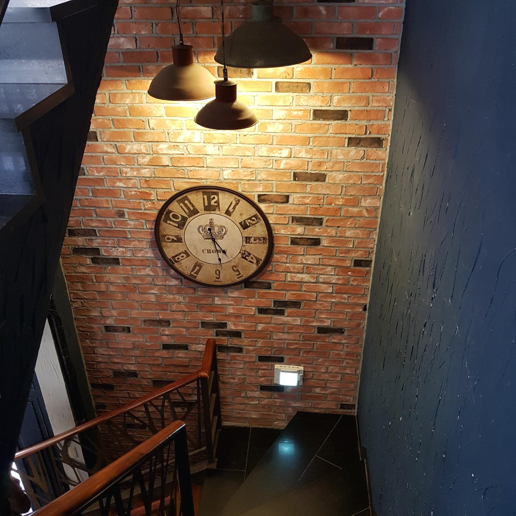 천장의 조명과 빈티지한 벽시계