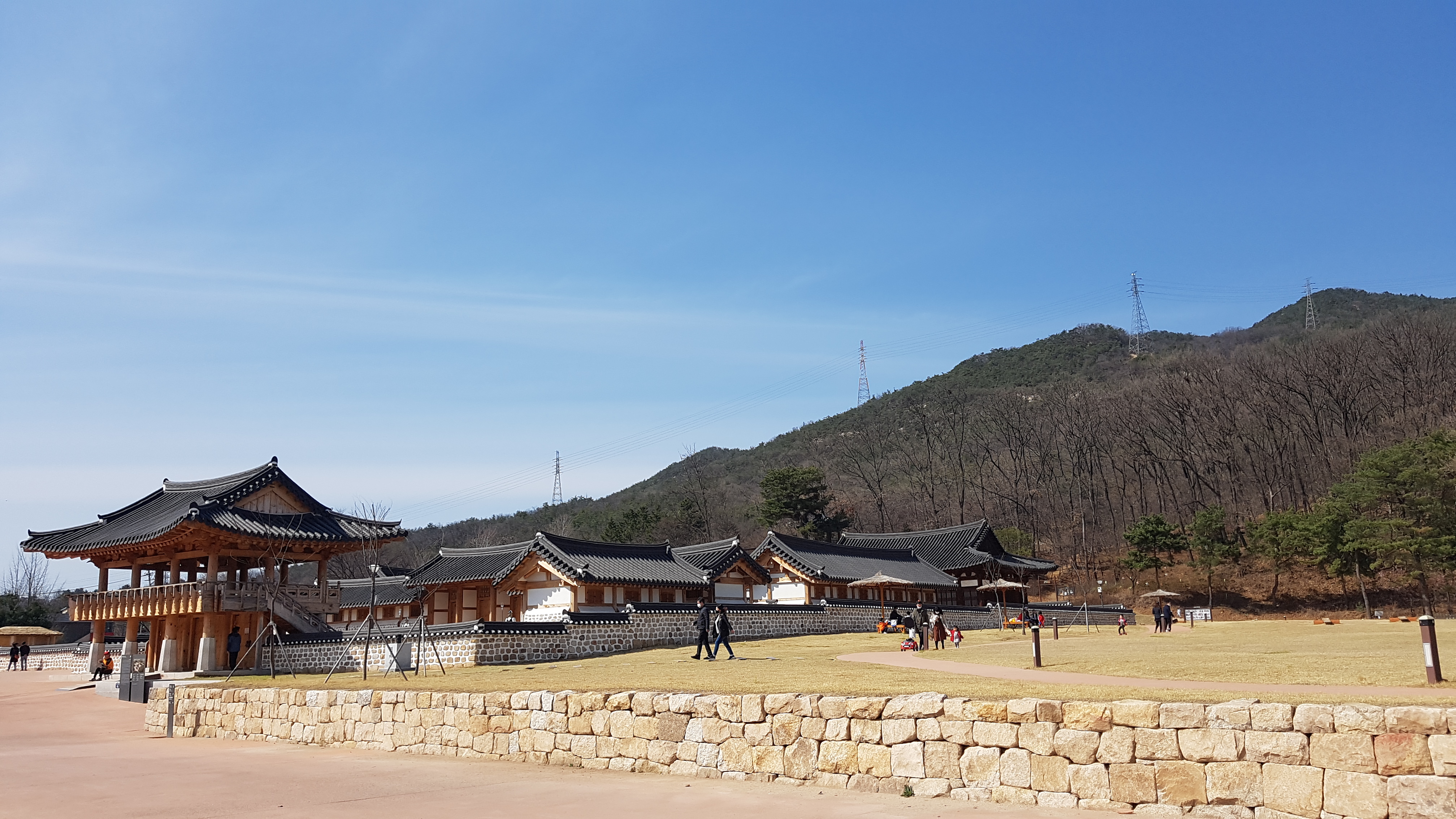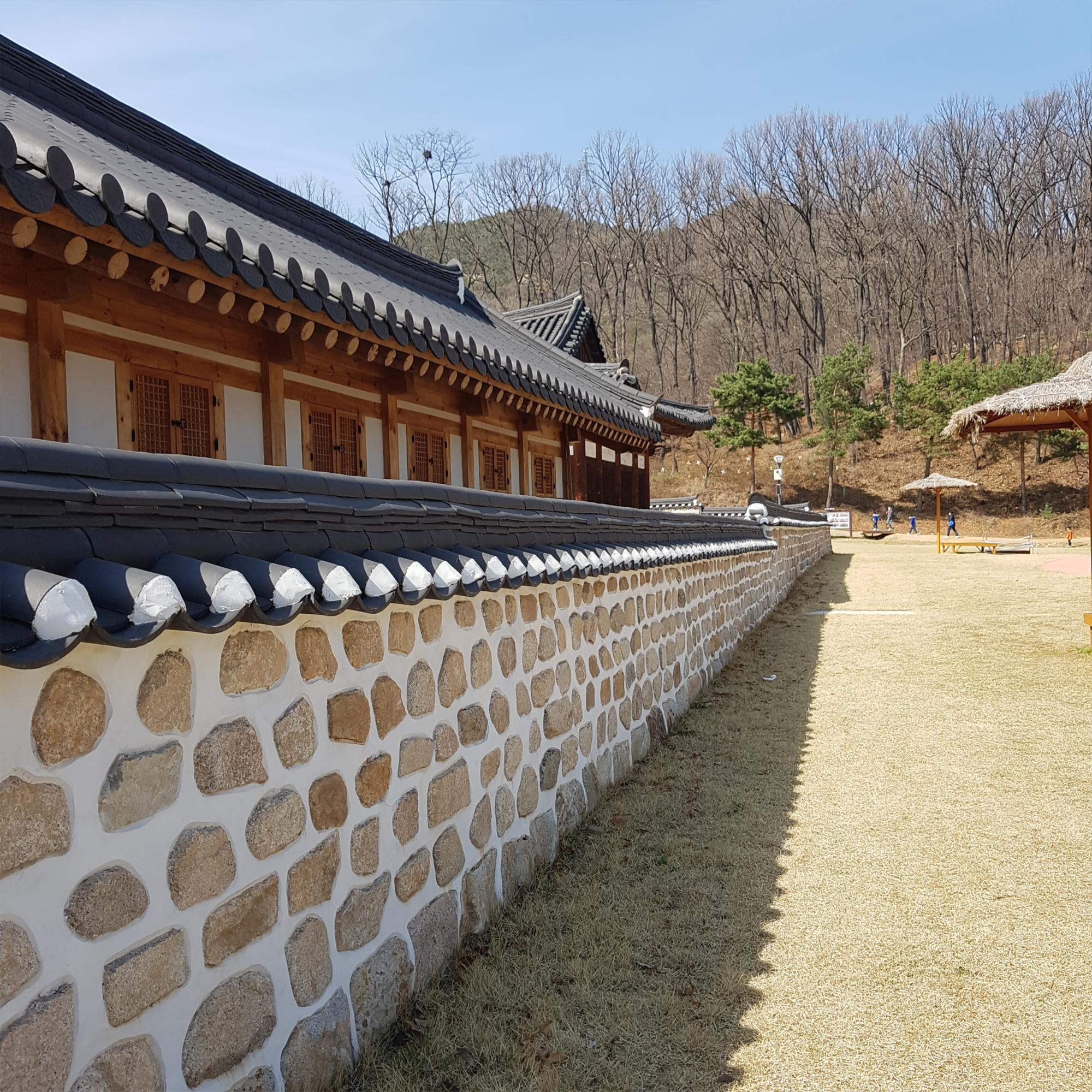 복원된 높지도 낮지도 않은 돌담이