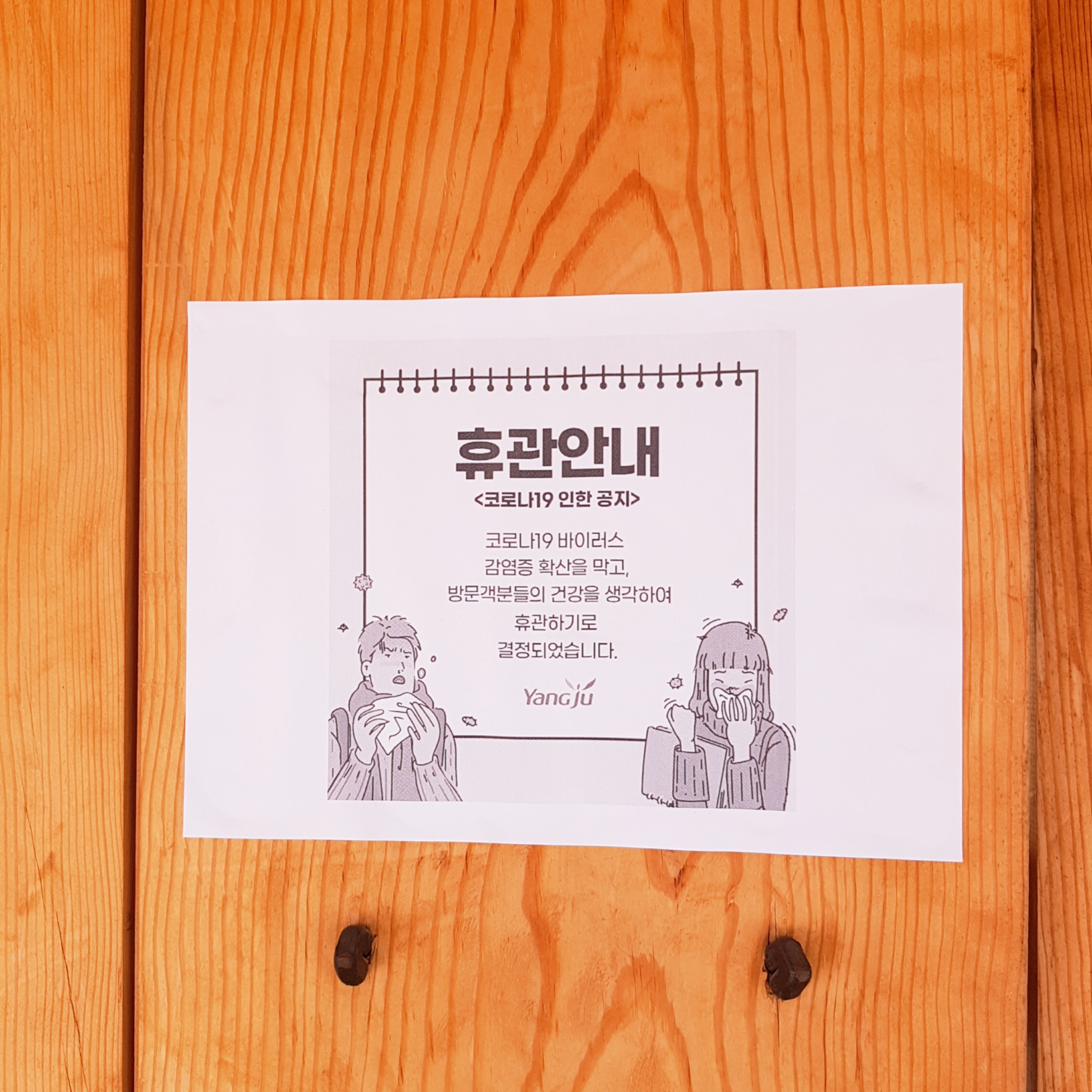 코로나19 때문에 문은 굳게 닫혀있어요