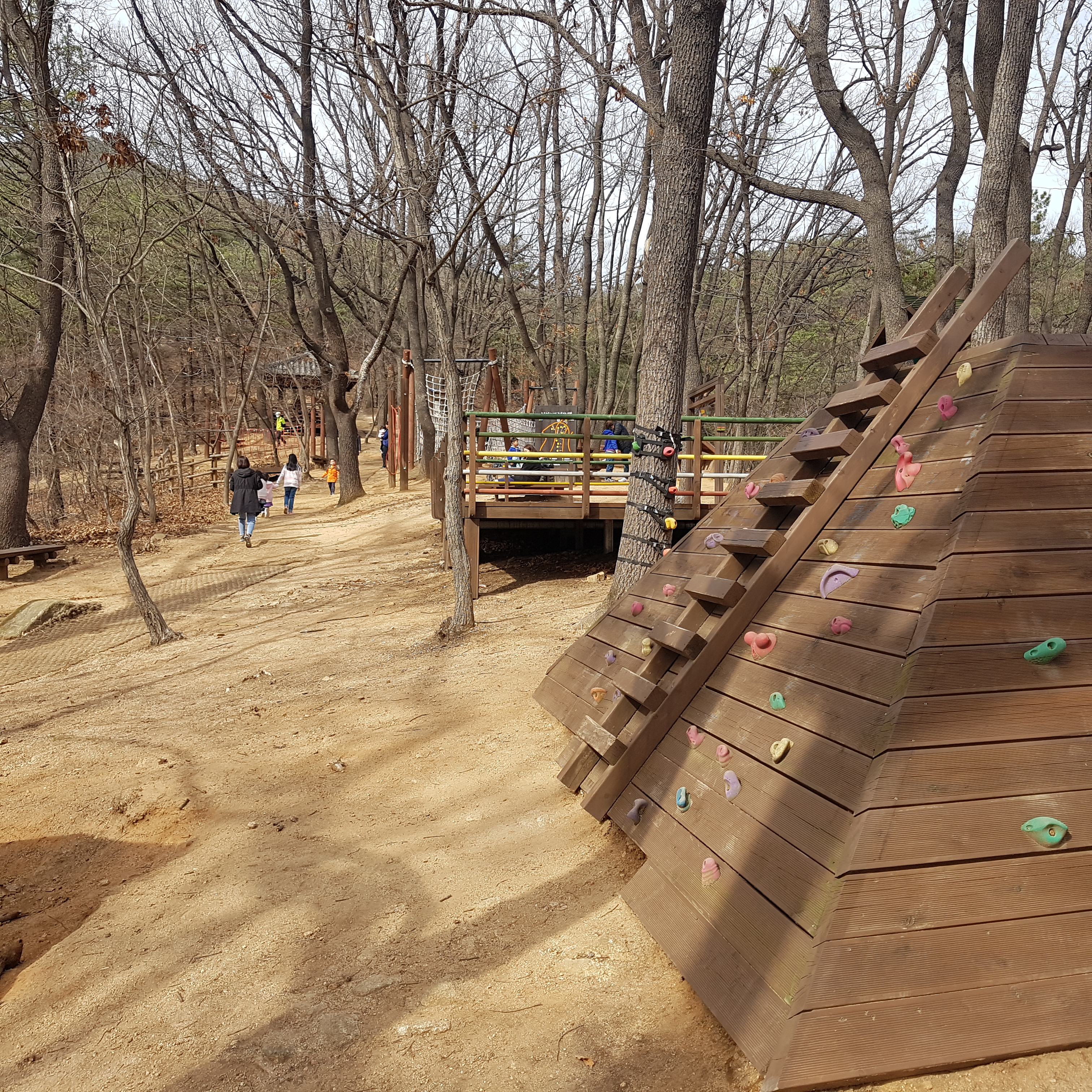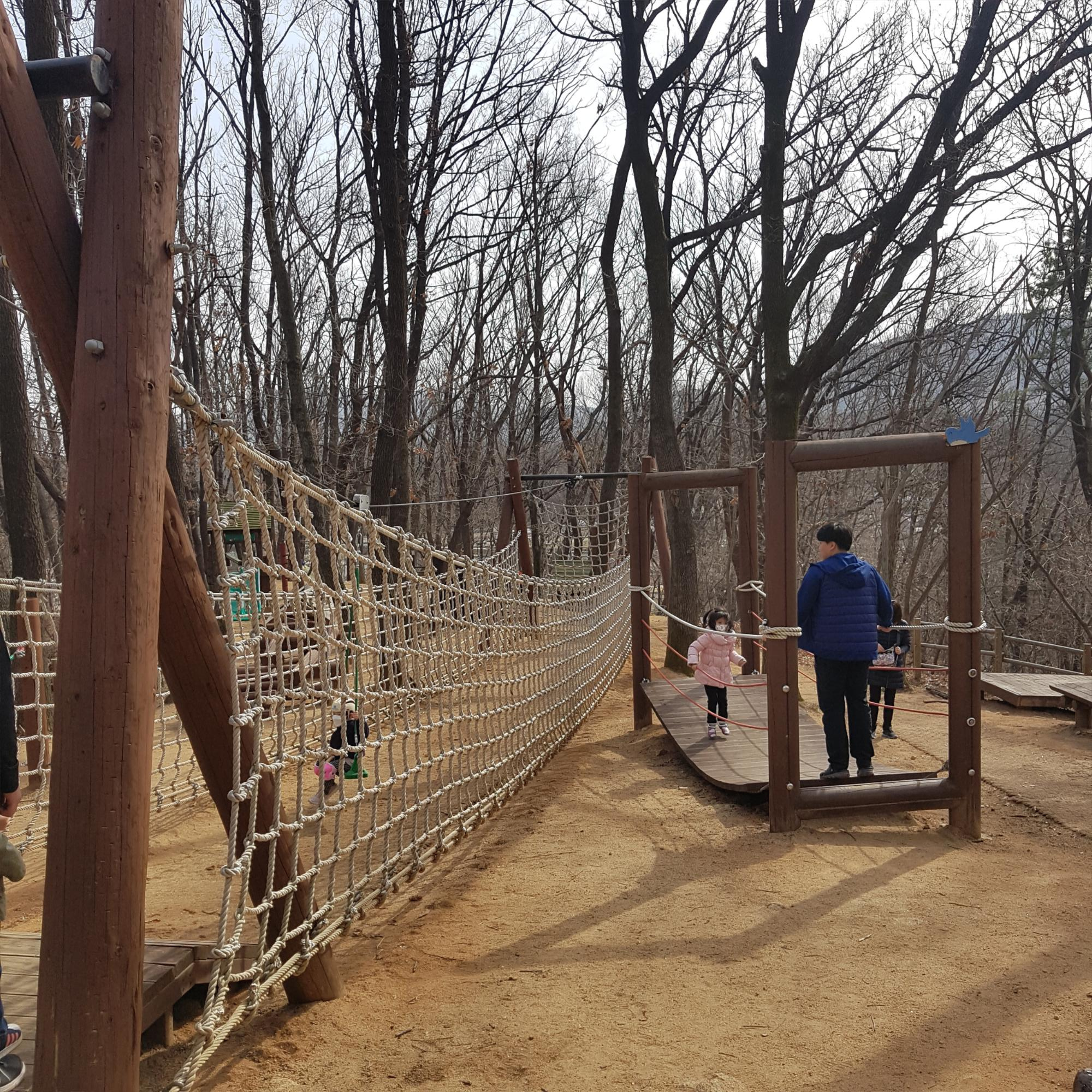 숲속 놀이터에서 뛰놀기 좋은 곳이에요