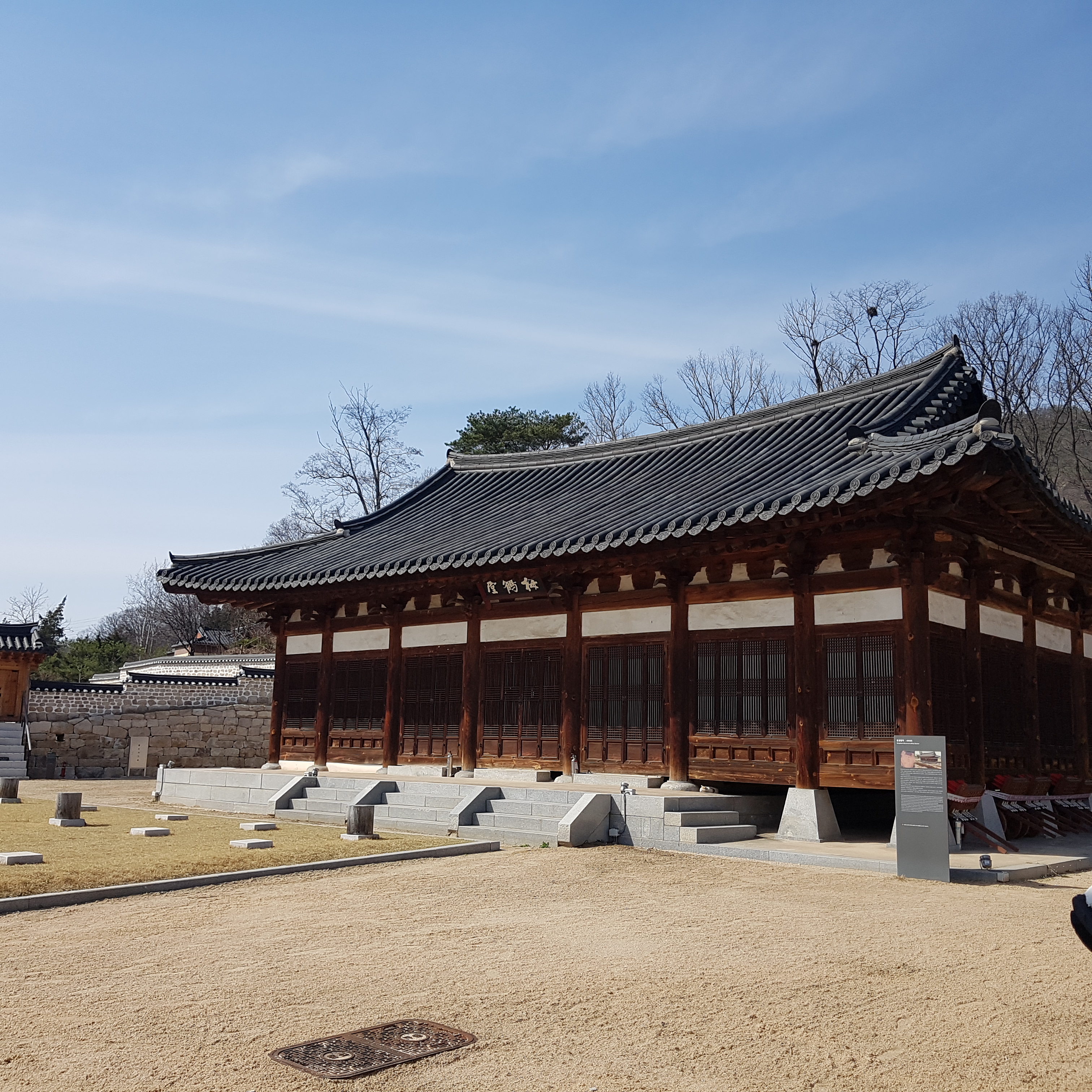 안으로 들어서면 동헌이라 불리는 매학당이 보여요