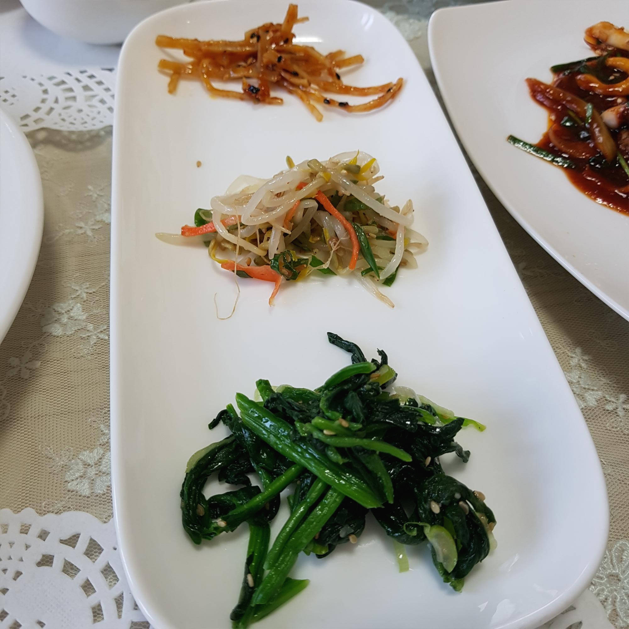 잠시 후 반찬들이 하나씩 나왔어요