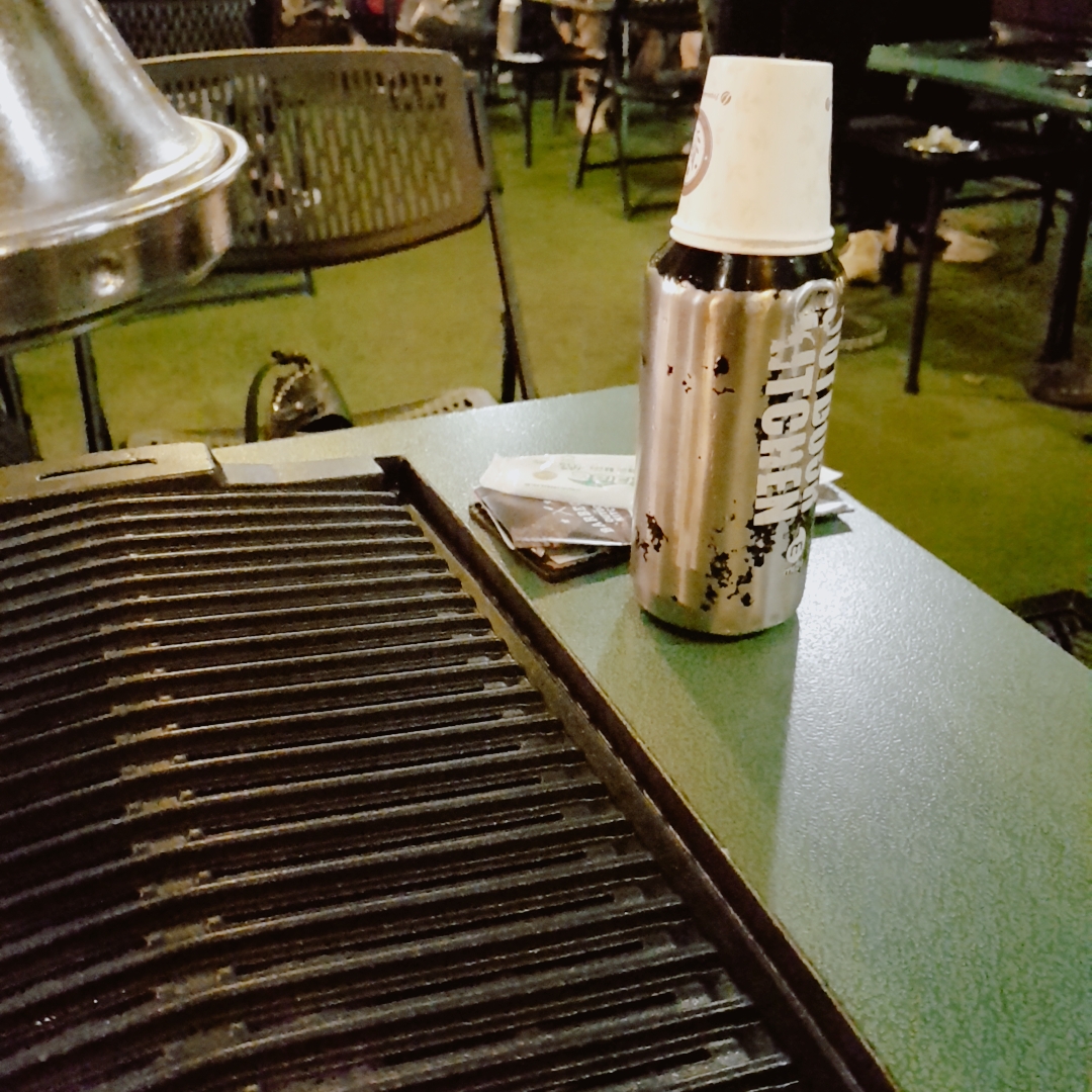 야외에서 고기를 구워 먹는 듯한 분위기를 주네요