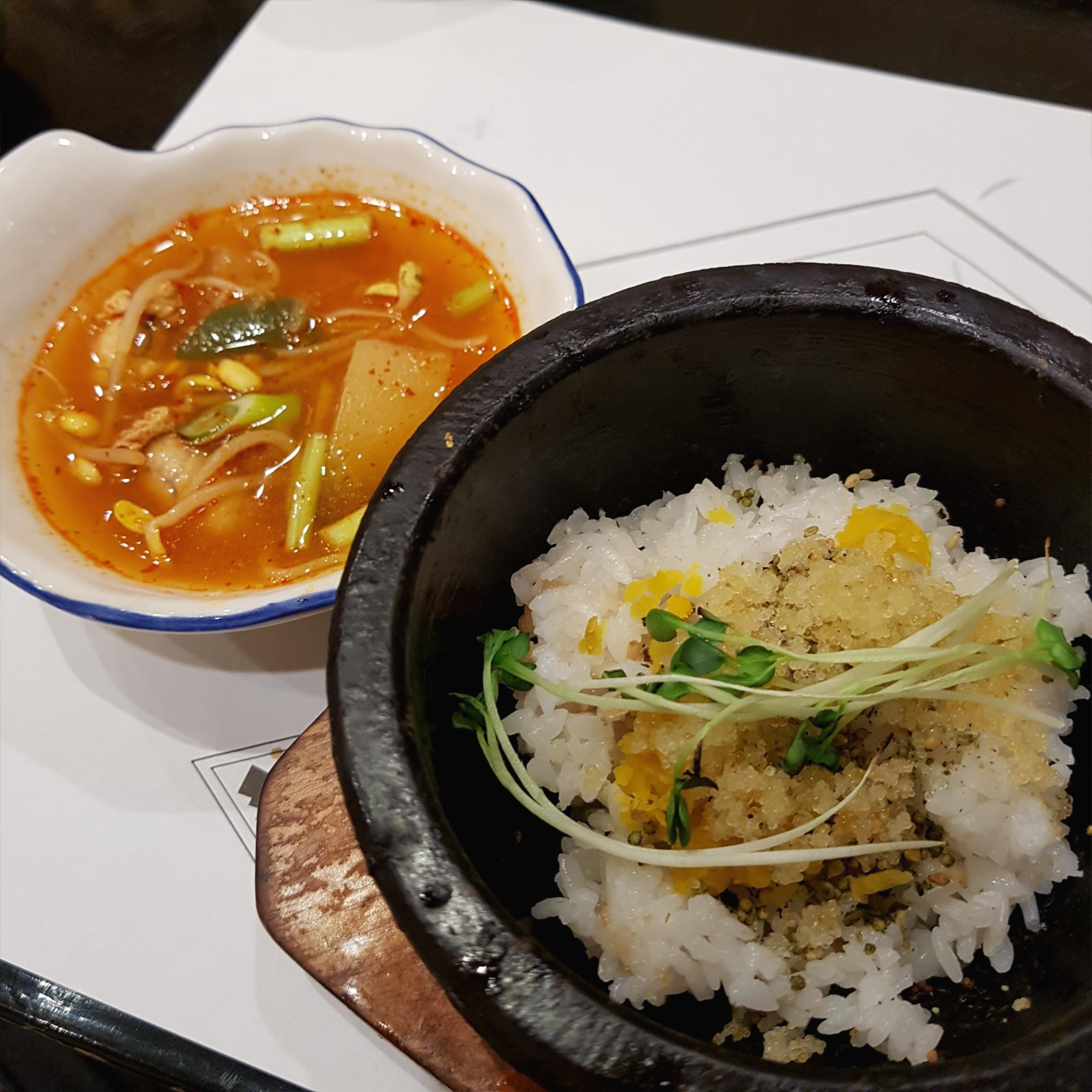 돌솥알밥과 얼큰한 국물의 알탕이 나왔어요