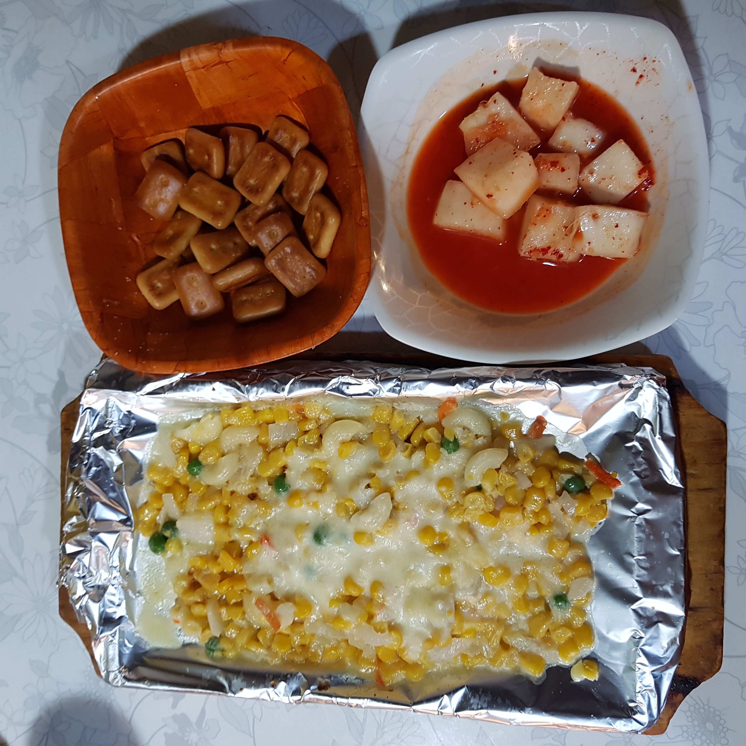 치즈 속 옥수수콘도 적당히 구워져 나왔어요