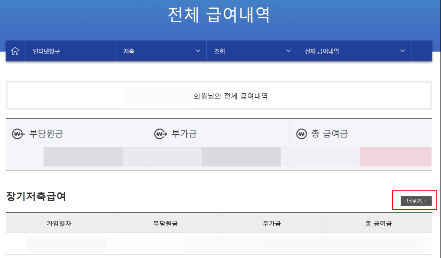장기저축급여 항목의 오른쪽 끝의 '더보기'를 클릭하시면