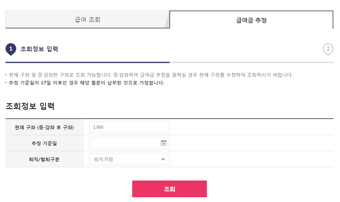 '급여금추정' 메뉴를 통해 퇴지급여금도 조회할 수 있어요