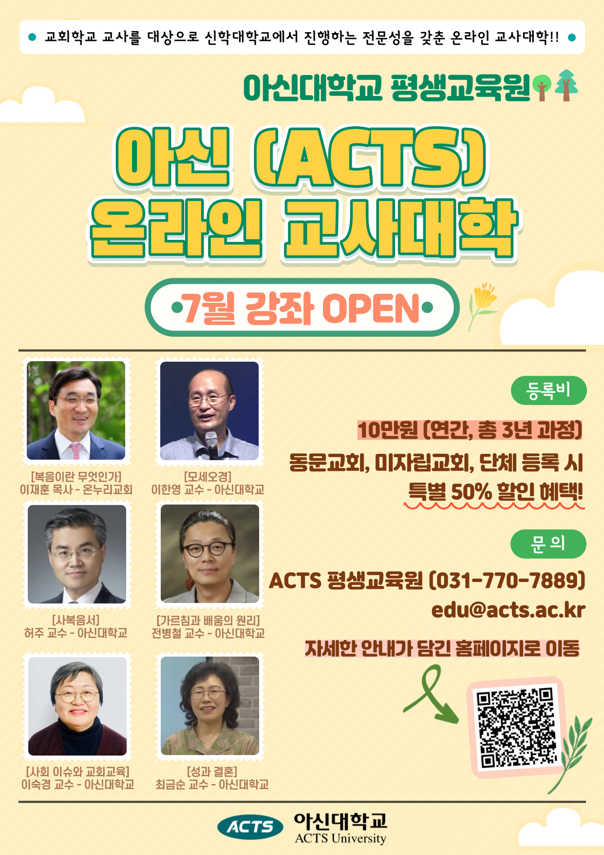 아신대학교 평생교육원 [아신(ACTS) 온라인 교사대학] 신청서