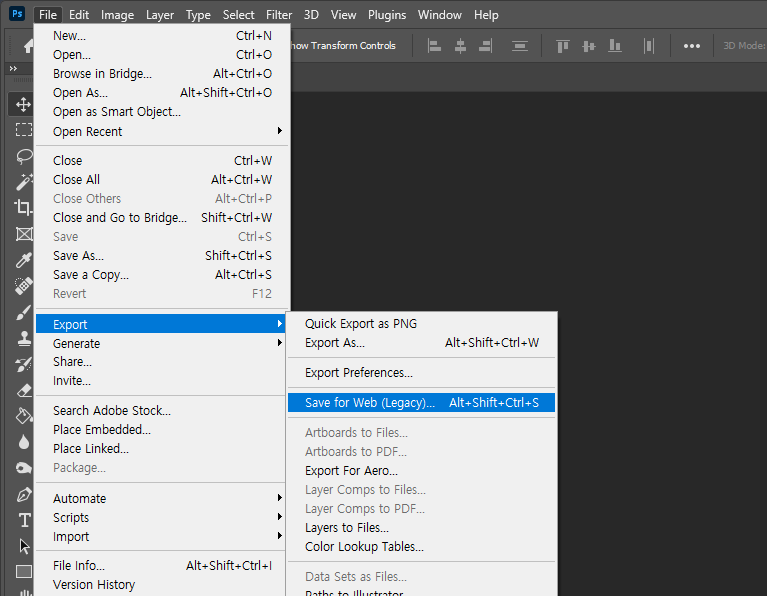 여기서 JPEG, PNG 등 확장자를 선택할 수 있습니다.