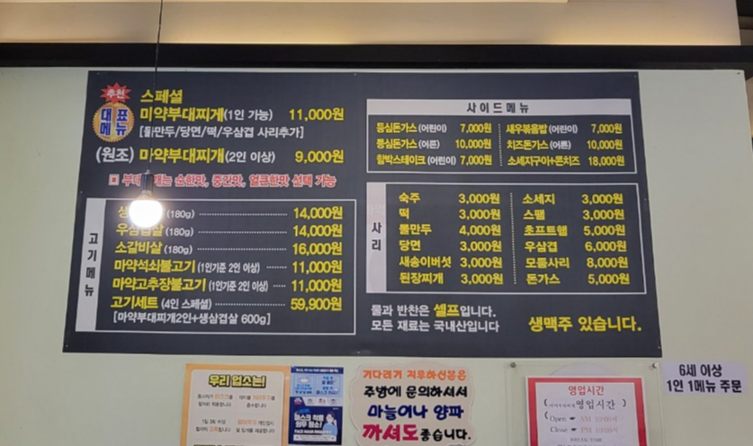 부대찌게 외에도 왕만두, 얼음냉면, 불고기, 삼겹살,