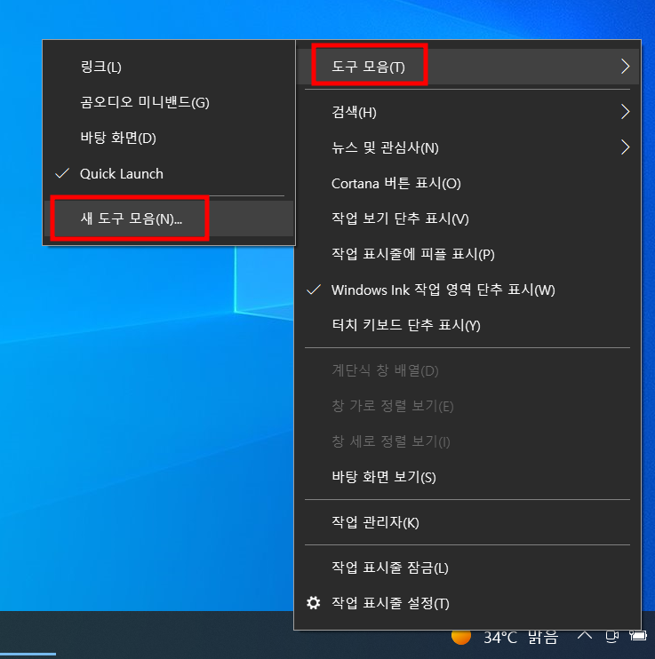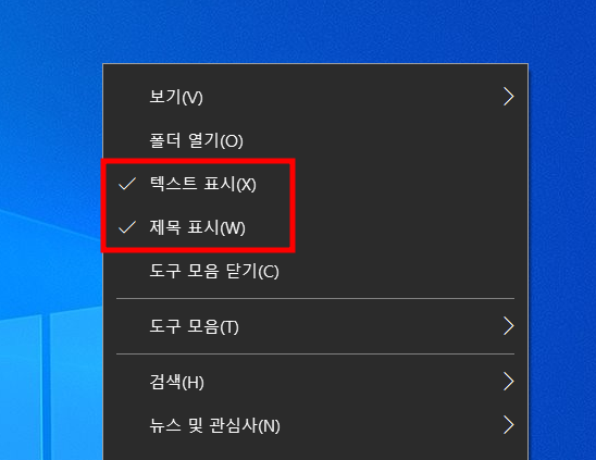1. 작업표시줄에서 오른쪽 버튼 클릭