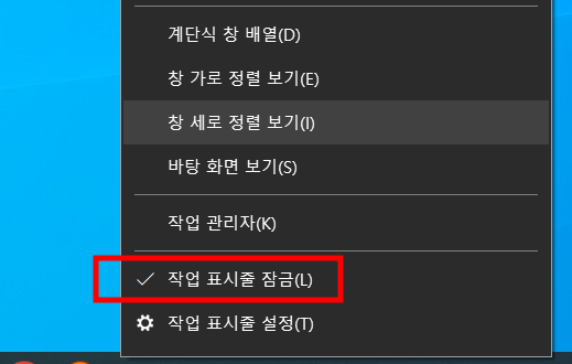 이후 작업표시줄 잠금 기능을 통해