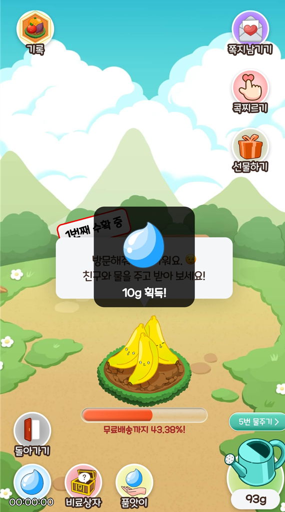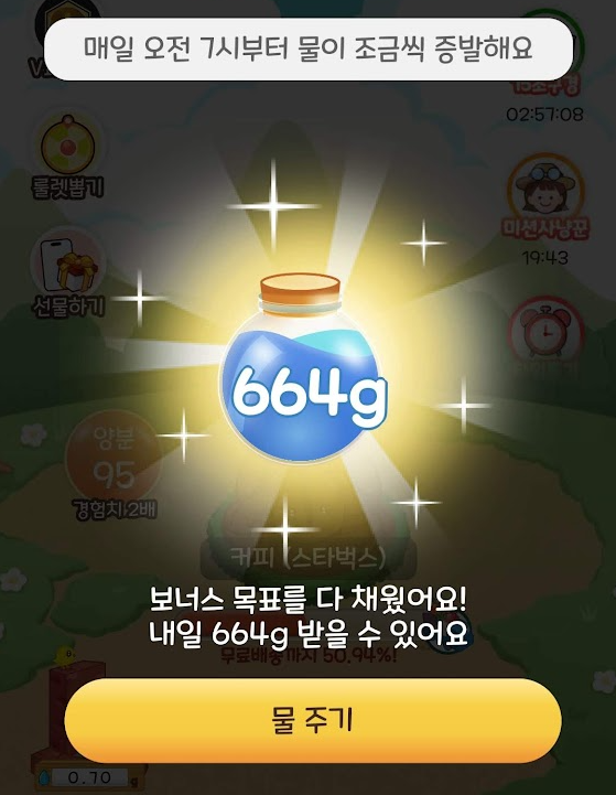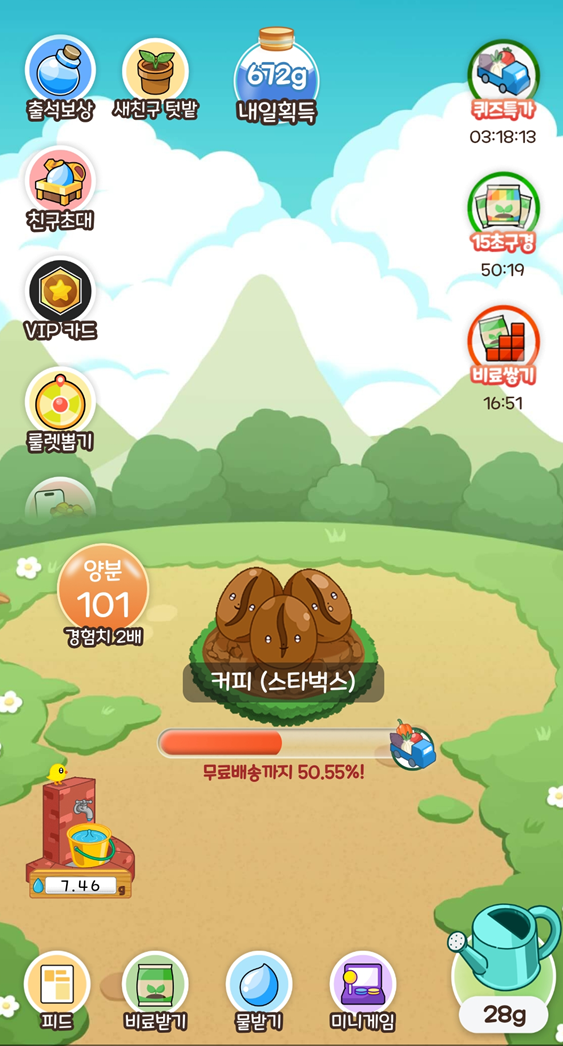미니게임을 통해 물과 비료를 받을 수 있고