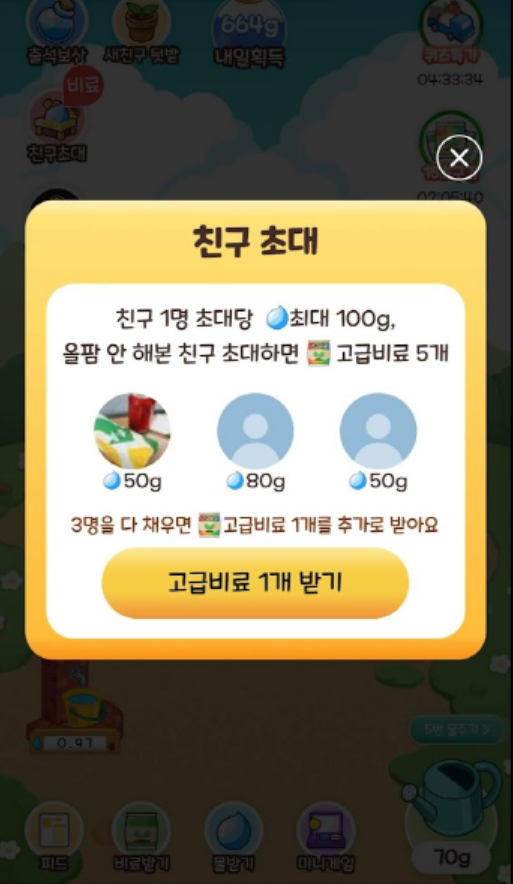 하루 3명을 초대하면 고급비료 1개